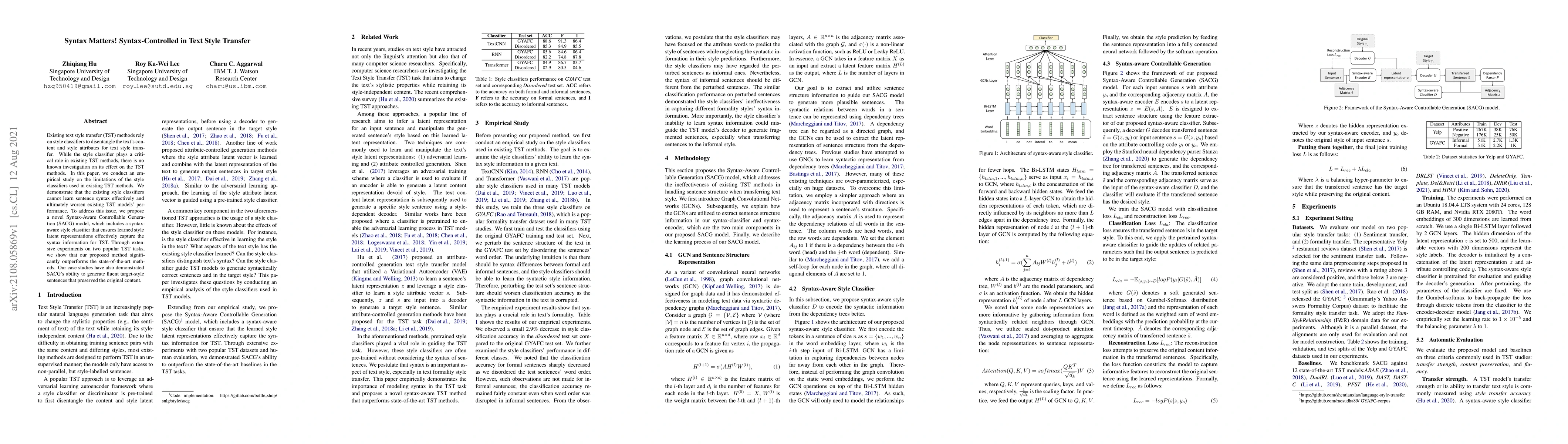 This paper investigates the limitations of style classifiers in text style transfer methods, revealing their inability to learn sentence syntax, which degrades model performance. To tackle this, the authors propose a Syntax-Aware Controllable Generation (SACG) model with a syntax-aware style classifier, achieving superior performance and fluency in style transfer tasks.