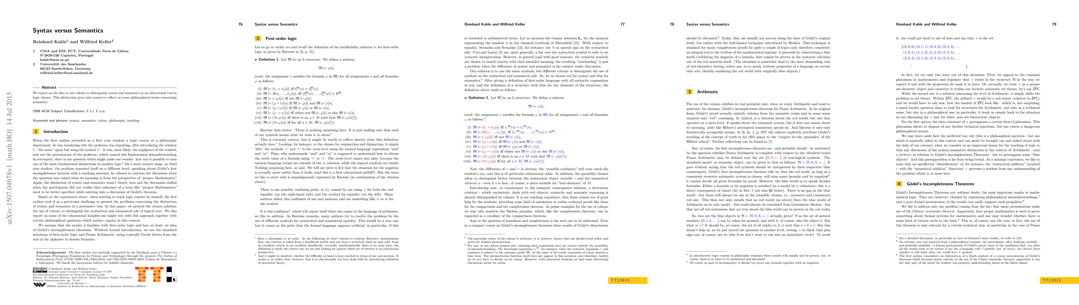 We report on the idea to use colours to distinguish syntax and semantics as an educational tool in logic classes. This distinction gives also reason to reflect on some philosophical issues concerning semantics.
