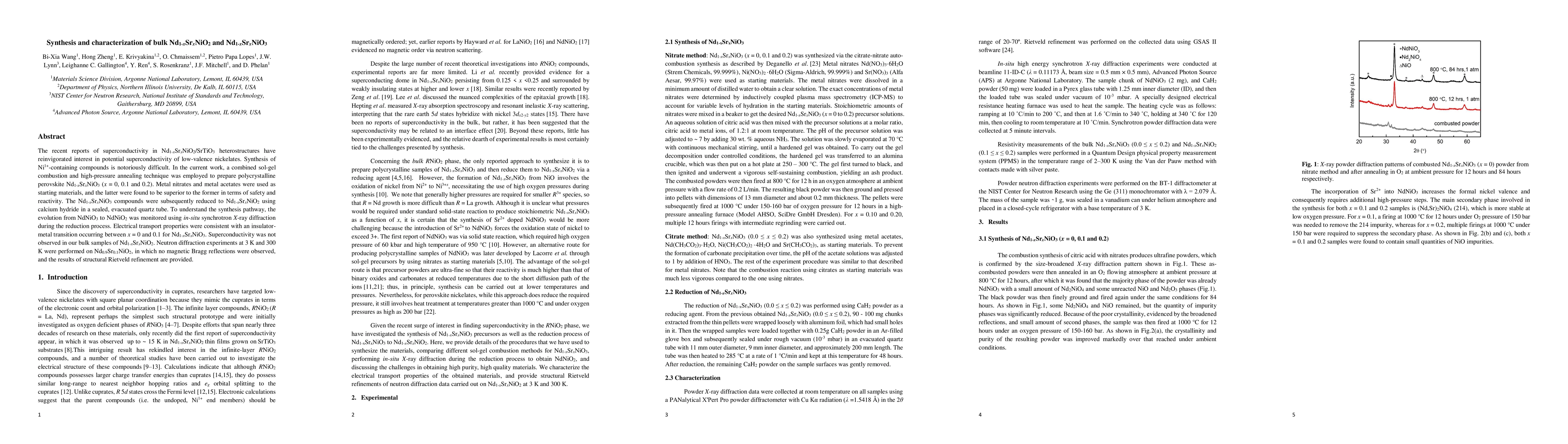 This paper details the synthesis of Nd1-xSrxNiO3 and its reduction to Nd1-xSrxNiO2 using a sol-gel combustion method, followed by high-pressure annealing. The study found no evidence of superconductivity in bulk Nd1-xSrxNiO2, despite an observed insulator-metal transition in Nd1-xSrxNiO3. Neutron diffraction confirmed no magnetic order in Nd0.9Sr0.1NiO2.