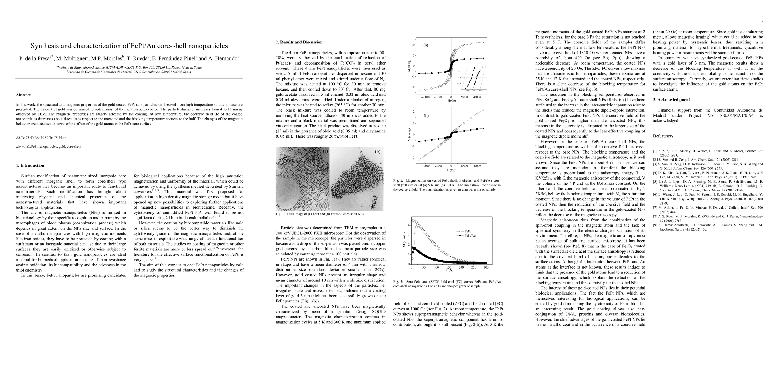 This paper synthesizes FePt/Au core-shell nanoparticles via high-temperature solution phase, optimizing gold coating to achieve uniform coverage. TEM reveals a diameter increase from 4 to 10 nm, while magnetic properties notably change, with a threefold decrease in coercive field at low temperatures and halved blocking temperature due to gold's influence on the FePt core surface.