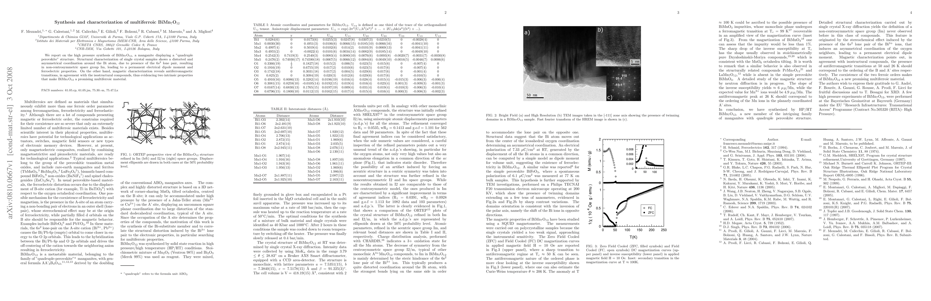 This paper reports the high-pressure synthesis of BiMn$_7$O$_{12}$, a manganite with a "quadruple perovskite" structure, exhibiting both ferroelectric and antiferromagnetic properties, making it a promising multiferroic material. Structural analysis reveals a non-centrosymmetric space group due to the Bi atom's $6s^{2}$ lone pair, contributing to its ferroelectric behavior.