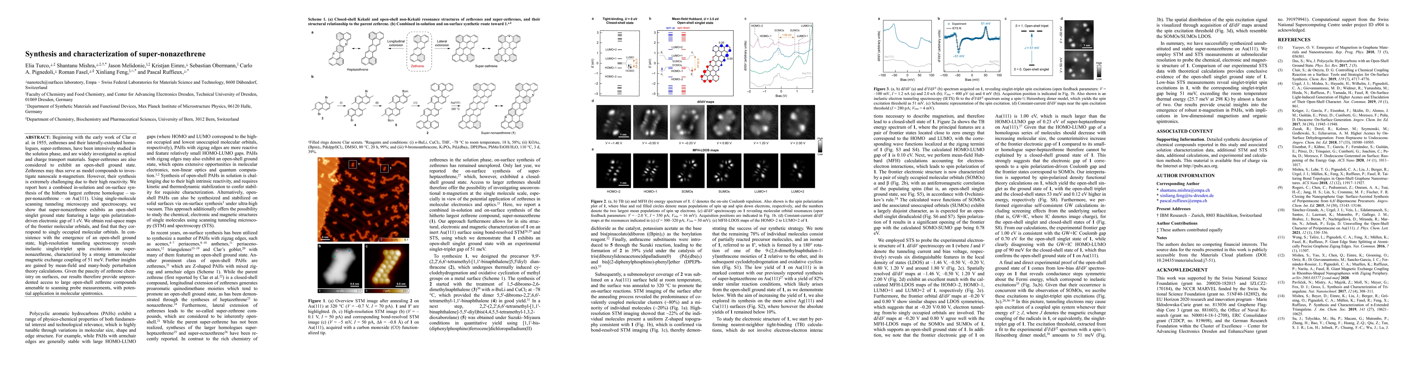 Beginning with the early work of Clar et al. in 1955, zethrenes and their laterally-extended homologues, super-zethrenes, have been intensively studied in the solution phase, and are widely investigated as optical and charge transport materials. Super-zethrenes are also considered to exhibit an open-shell ground state. Zethrenes may thus serve as model compounds to investigate nanoscale pi-magnetism. However, their synthesis is extremely challenging due to their high reactivity. We report here a combined in-solution and on-surface synthesis of the hitherto largest zethrene homologue - super-nonazethrene - on Au(111). Using single-molecule scanning tunneling microscopy and spectroscopy, we show that super-nonazethrene exhibits an open-shell singlet ground state featuring a large spin polarization-driven electronic gap of 1 eV. We obtain real-space maps of the frontier molecular orbitals, and find that they correspond to singly occupied molecular orbitals. In consistence with the emergence of an open-shell ground state, high-resolution tunneling spectroscopy reveals inelastic singlet-triplet spin excitations in super-nonazethrene, characterized by a strong intramolecular magnetic exchange coupling of 51 meV. Further insights are gained by mean-field and many-body perturbation theory calculations. Given the paucity of zethrene chemistry on surfaces, our results therefore provide unprecedented access to large open-shell zethrene compounds amenable to scanning probe measurements, with potential application in molecular spintronics.