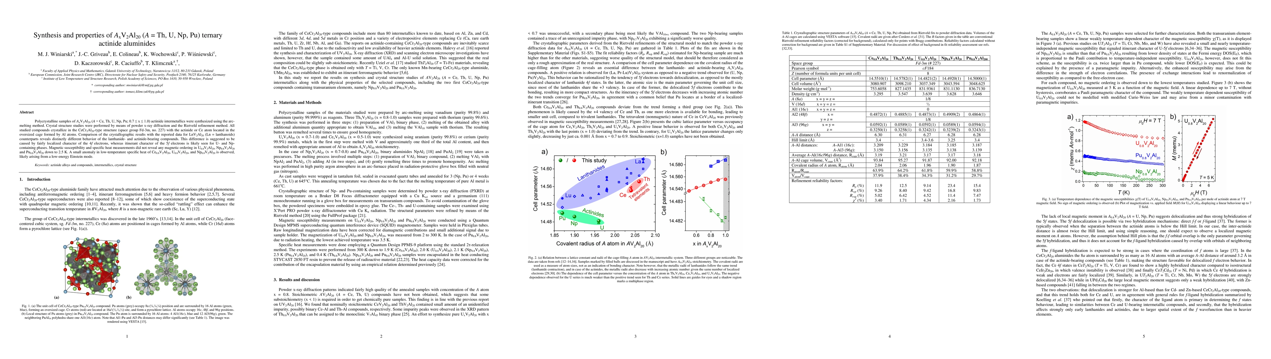 This study synthesizes A_xV_2Al_20 (A = Th, U, Np, Pu) actinide intermetallics using arc-melting, confirming they crystallize in a specific structure with actinide atoms in unique Al cages. Unlike lanthanide counterparts, actinide compounds show distinct behavior due to electron localization, with no magnetic ordering found in U, Np, and Pu-containing phases. Low-temperature specific heat anomalies hint at low-energy Einstein modes in some compounds.