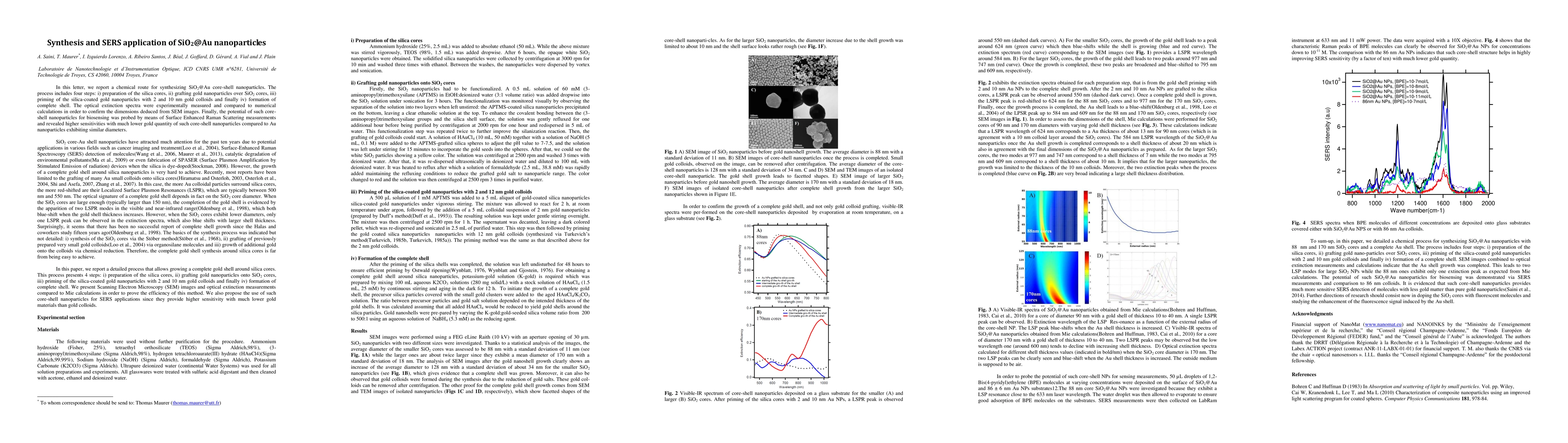 Researchers synthesized SiO2@Au nanoparticles using a four-step process and demonstrated higher sensitivity in surface-enhanced Raman scattering (SERS) measurements for biosensing applications with reduced gold quantity compared to similar-sized Au nanoparticles.