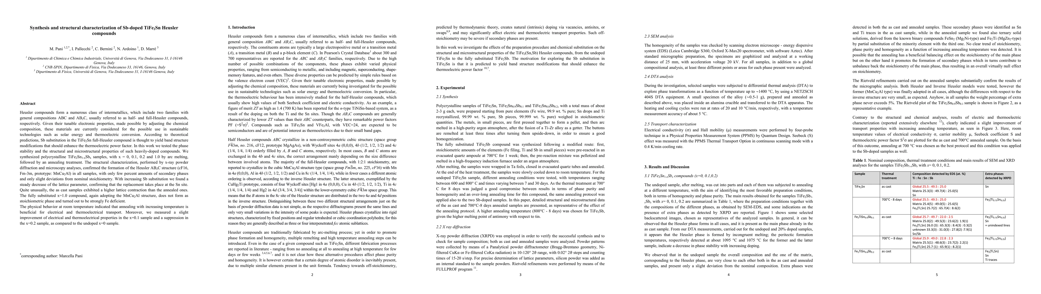 Heusler compounds form a numerous class of intermetallics, which include two families of compositions ABC and AB2C, usually referred to as half- and full-Heusler compounds, respectively. Given their tunable electronic properties, made possible by adjusting the chemical composition, these materials are currently considered for the possible use in sustainable technologies such as solar energy and thermoelectric conversion. According to theoretical predictions, Sb substitution in the TiFe2Sn full-Heusler compound is thought to yield band structure modifications that should enhance the thermoelectric power factor. In this work we tested the phase stability and the structural and microstructural properties of such heavily-doped compounds. We synthesized polycrystalline TiFe2Sn1-xSbx samples (x=0,0.1,0.2 and 1.0) by arc melting, followed annealing. The structural characterization, performed by x-ray powder diffraction and microscopy analyses, confirmed the formation of the Heusler AB2C structure (cF16, Fm-3m, prototype: MnCu2Al) in all samples, with only few percent amounts of secondary phases and only slight deviations from nominal stoichiometry. With increasing Sb substitution we found a steady decrease of the lattice parameter, confirming that the replacement takes place at the Sn site. Quite unusually, the as cast samples exhibited a higher lattice contraction than the annealed ones. The fully substituted x=1.0 compound, again adopting the MnCu2Al structure, does not form as stoichiometric phase and turned out to be strongly Fe deficient.The physical behavior at room temperature indicated that annealing with increasing temperature is beneficial for electrical and thermoelectrical transport. Moreover, we measured a slight improvement of electrical and thermoelectrical properties in the x=0.1 sample and a suppression in the x=0.2 sample, as compared to the undoped x=0 sample.
