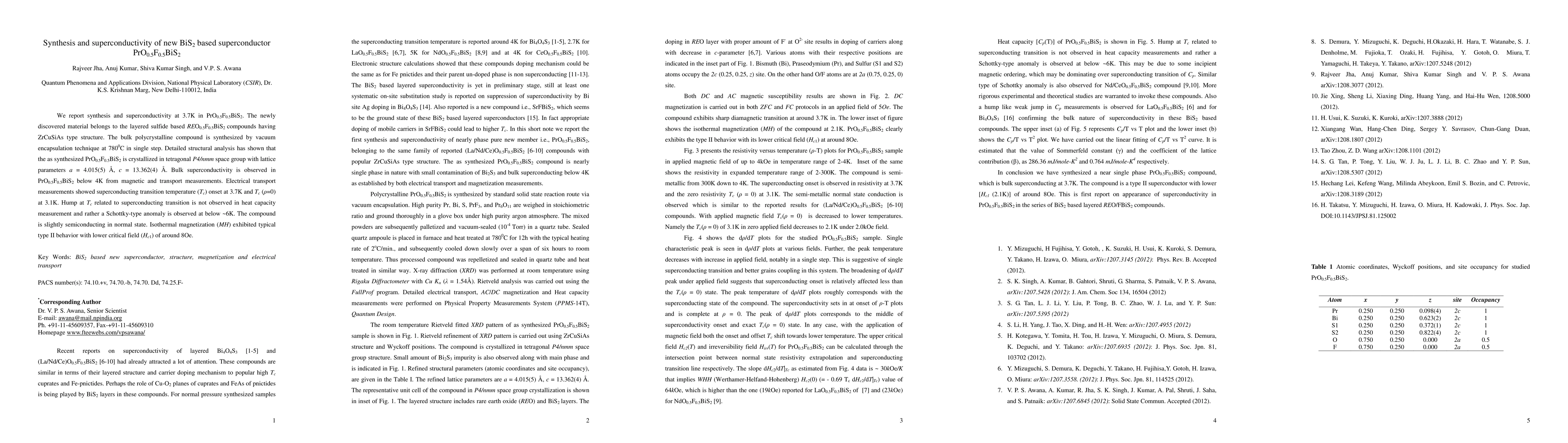 This paper reports the synthesis of the new superconductor PrO0.5F0.5BiS2, which exhibits superconductivity at 3.7K. The material crystallizes in a tetragonal structure with a superconducting transition temperature (Tc) onset at 3.7K and a zero-resistance transition at 3.1K.