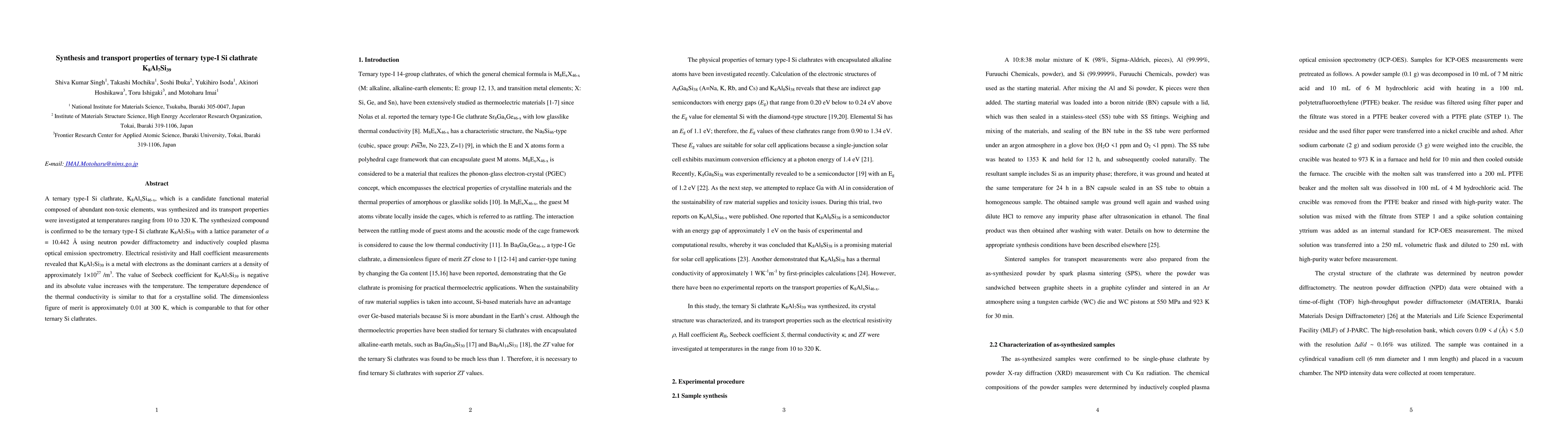 Researchers synthesized a ternary type-I Si clathrate with metal transport properties, exhibiting negative Seebeck coefficient and comparable figure of merit to other ternary Si clathrates.