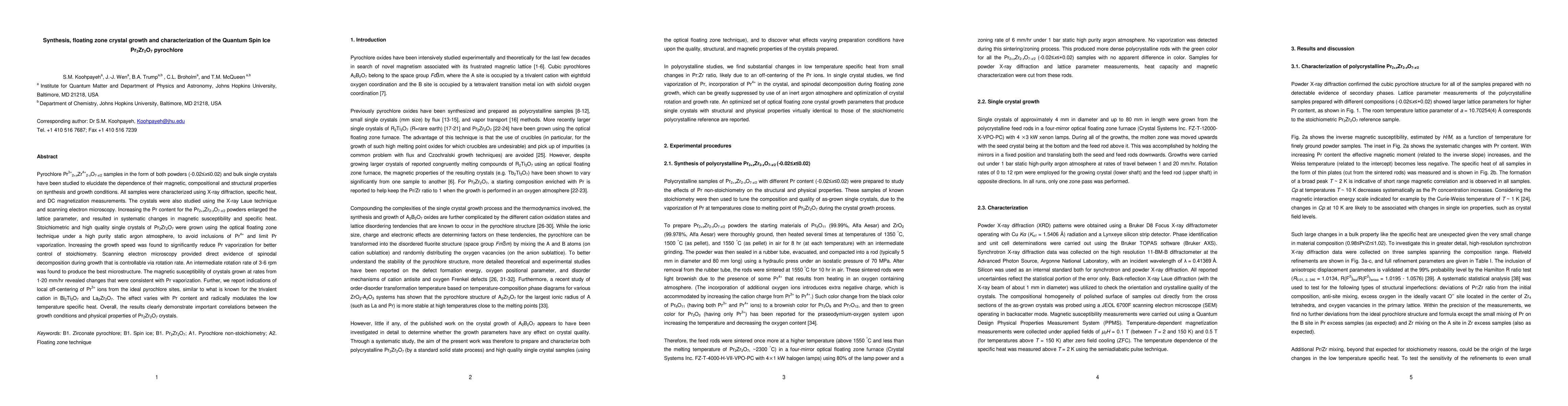 This paper investigates the synthesis and growth of $\rm Pr_2Zr_2O_7$ quantum spin ice crystals, focusing on the effects of Pr content and growth conditions on magnetic, compositional, and structural properties. High-quality single crystals were grown using the floating zone technique, revealing significant correlations between growth parameters and material properties, including Pr vaporization and spinodal decomposition.