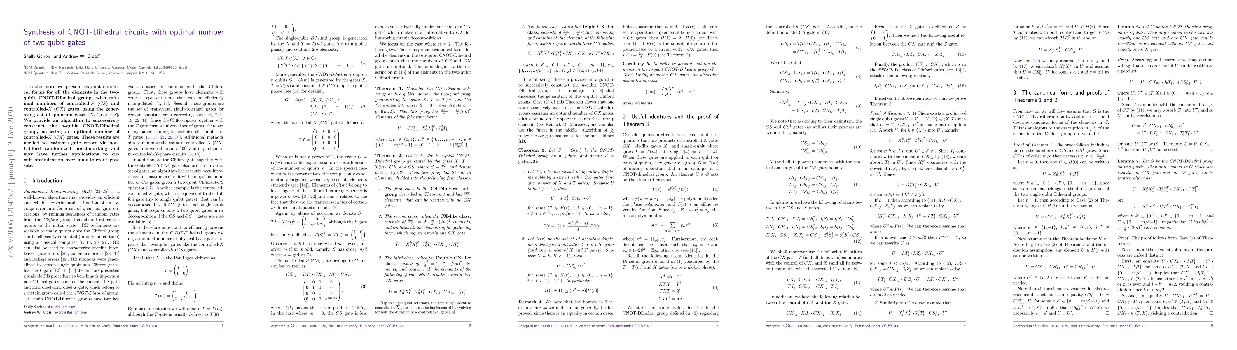 This research presents canonical forms for two-qubit CNOT-Dihedral group elements using minimal CS and CX gates, and provides an algorithm for constructing n-qubit CNOT-Dihedral groups with an optimal number of CX gates, crucial for gate error estimation and circuit optimization.