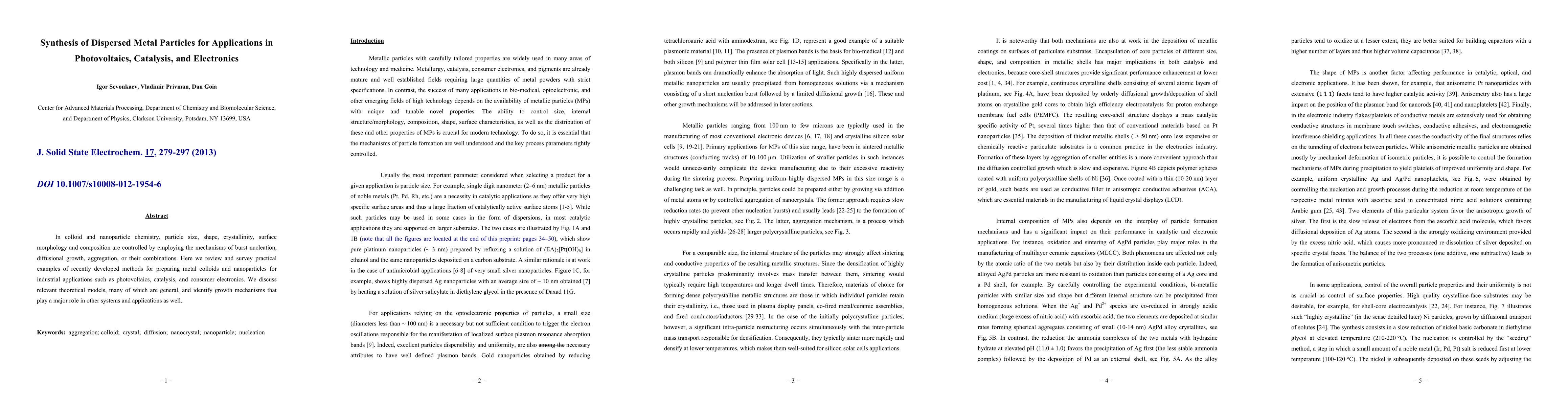 This paper reviews recent methods for synthesizing metal colloids and nanoparticles, crucial for applications in photovoltaics, catalysis, and electronics. It discusses growth mechanisms and their broader applicability, highlighting relevant theoretical models.