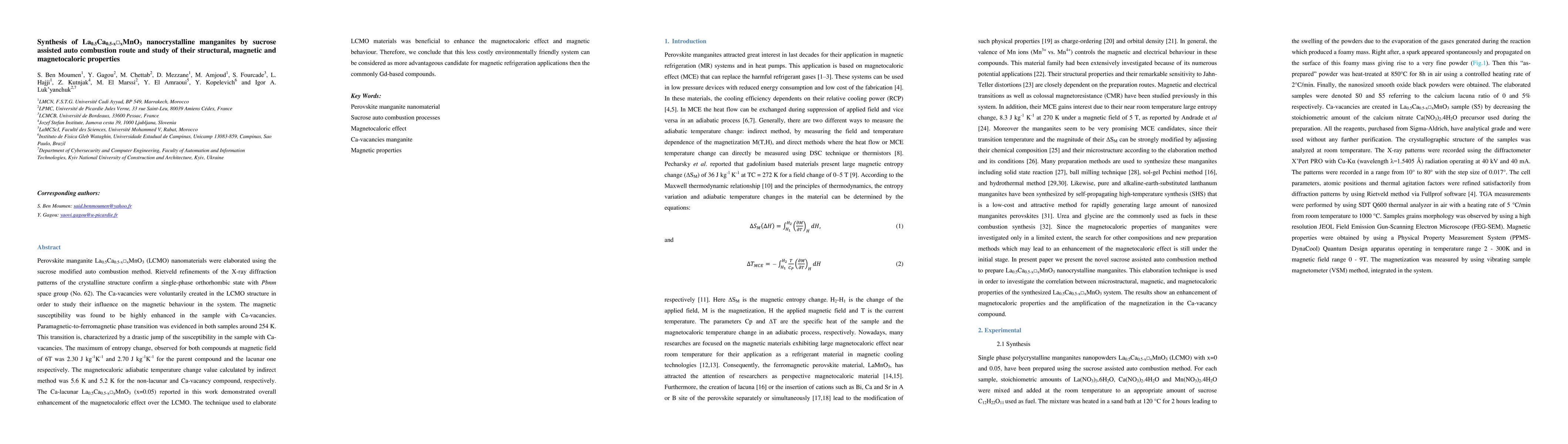 Researchers synthesized La0.5Ca0.5-x xMnO3 nanocrystalline manganites using a sucrose-assisted auto combustion method and found that introducing Ca-vacancies enhances magnetic behavior and magnetocaloric effect.