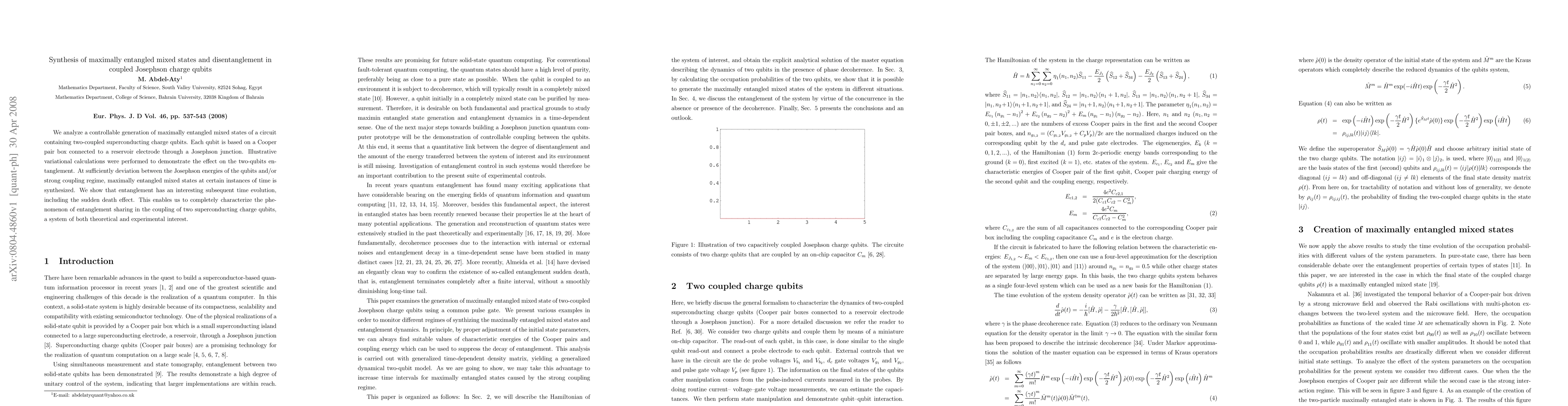 This paper explores the generation of maximally entangled mixed states in a system of two coupled superconducting charge qubits, demonstrating their time-dependent entanglement evolution and the occurrence of the sudden death effect, which is significant for both theoretical and experimental quantum computing research.