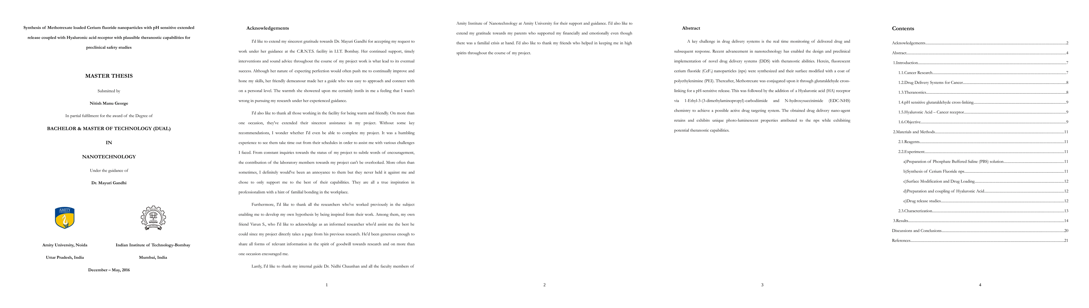 This paper details the synthesis of fluorescent cerium fluoride nanoparticles modified with polyethylenimine, loaded with Methotrexate for pH-sensitive release, and functionalized with Hyaluronic acid receptors, demonstrating potential theranostic capabilities for real-time drug monitoring and targeted delivery.