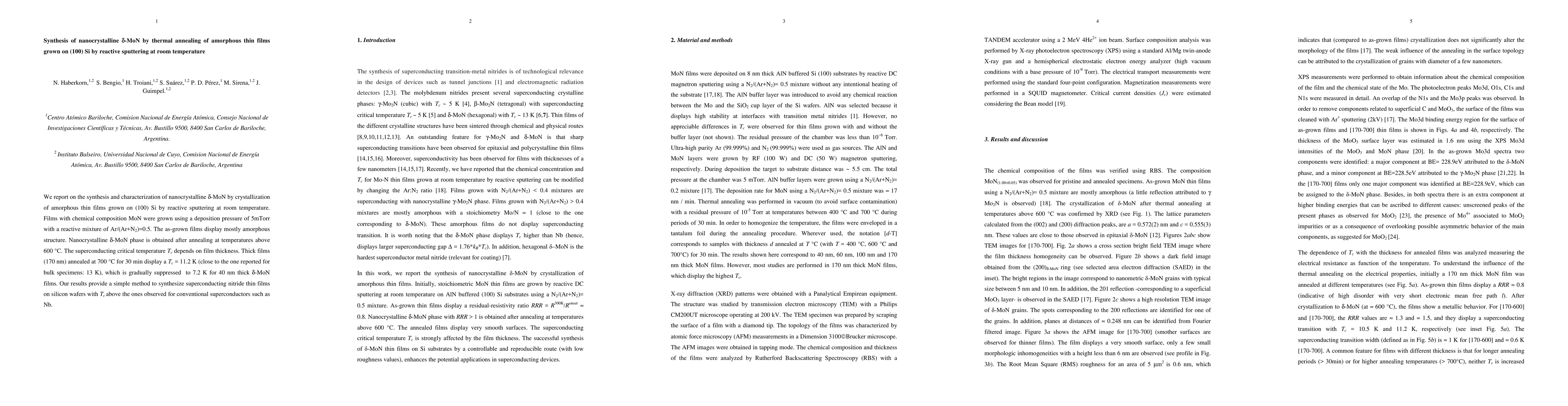This paper details the synthesis of nanocrystalline delta-MoN thin films via thermal annealing of amorphous films grown on Si by reactive DC sputtering at room temperature, achieving a superconducting critical temperature Tc of 11.2 K for 170 nm thick films. The Tc decreases with thinner films, highlighting the method's potential for creating high-Tc superconducting nitride films on silicon substrates.