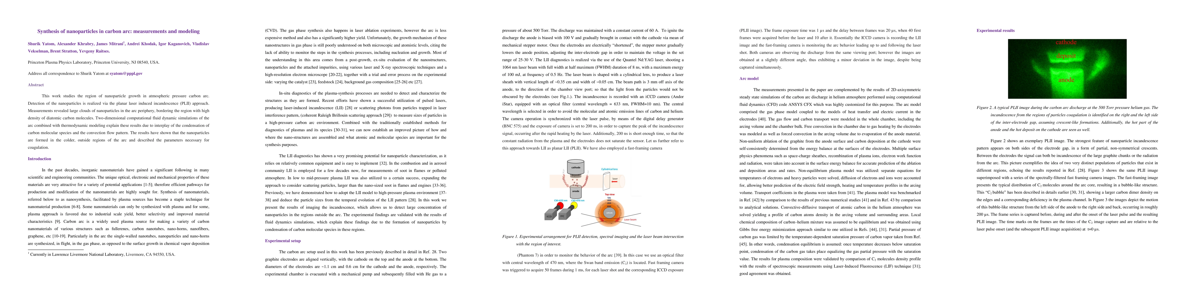 This study investigates nanoparticle growth in atmospheric pressure carbon arcs using planar laser-induced incandescence (PLII) and computational fluid dynamics, revealing nanoparticle formation in the colder, outer regions of the arc due to molecular condensation and convection. The findings describe the conditions necessary for nanoparticle coagulation.