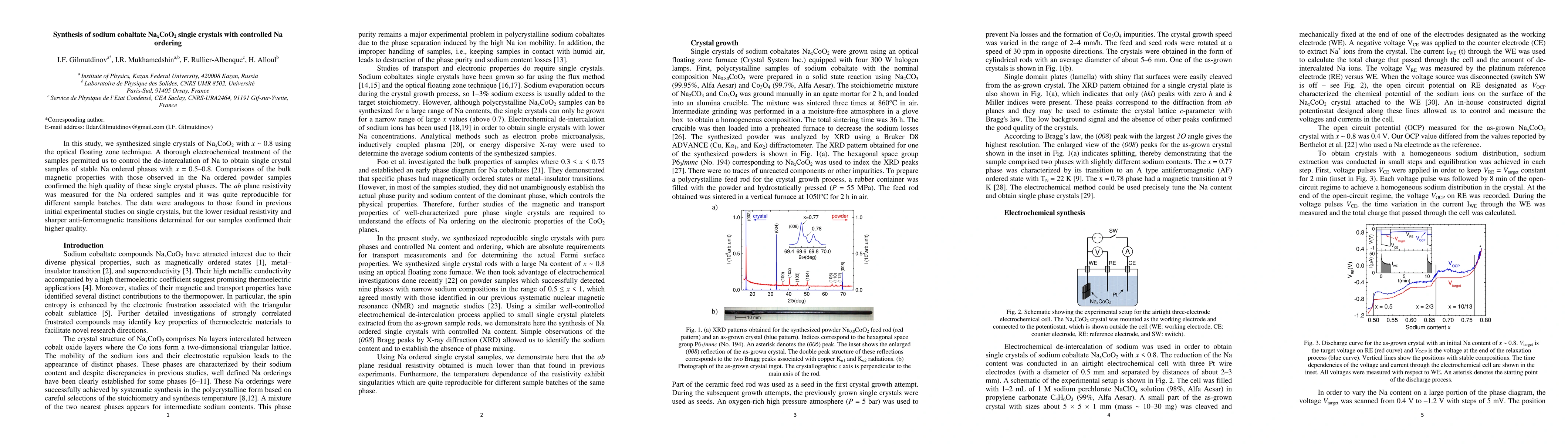 This study synthesizes high-quality Na$_{x}$CoO$_{2}$ single crystals with controlled sodium ordering using the optical floating zone technique, achieving stable Na ordered phases with $x$ in the range of 0.5-0.8. The high quality of these crystals is confirmed by their reproducible ab plane resistivity and sharper magnetic transitions compared to previous powder samples.