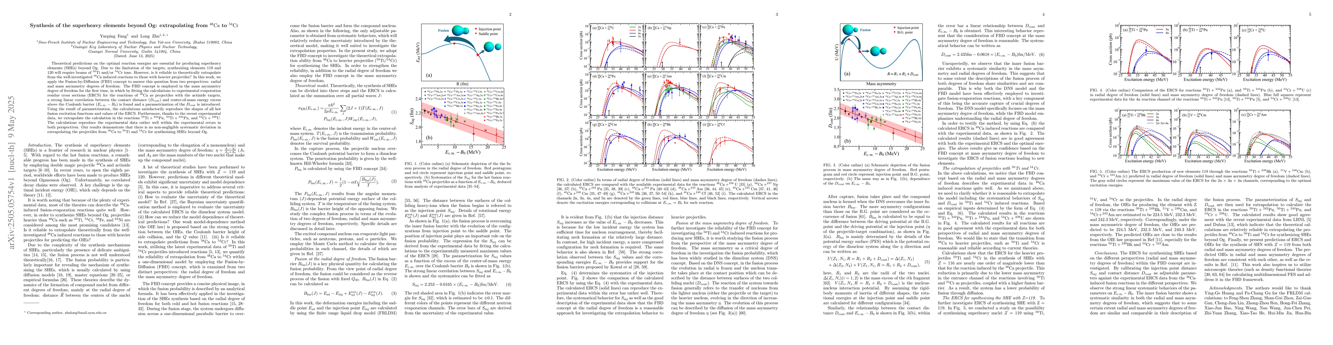 Researchers successfully extrapolated reaction energies for synthesizing superheavy elements beyond Og using a theoretical framework called Fusion-by-Diffusion, finding no non-negligible systematic deviation in using projectiles of 50Ti and 54Cr instead of 48Ca.