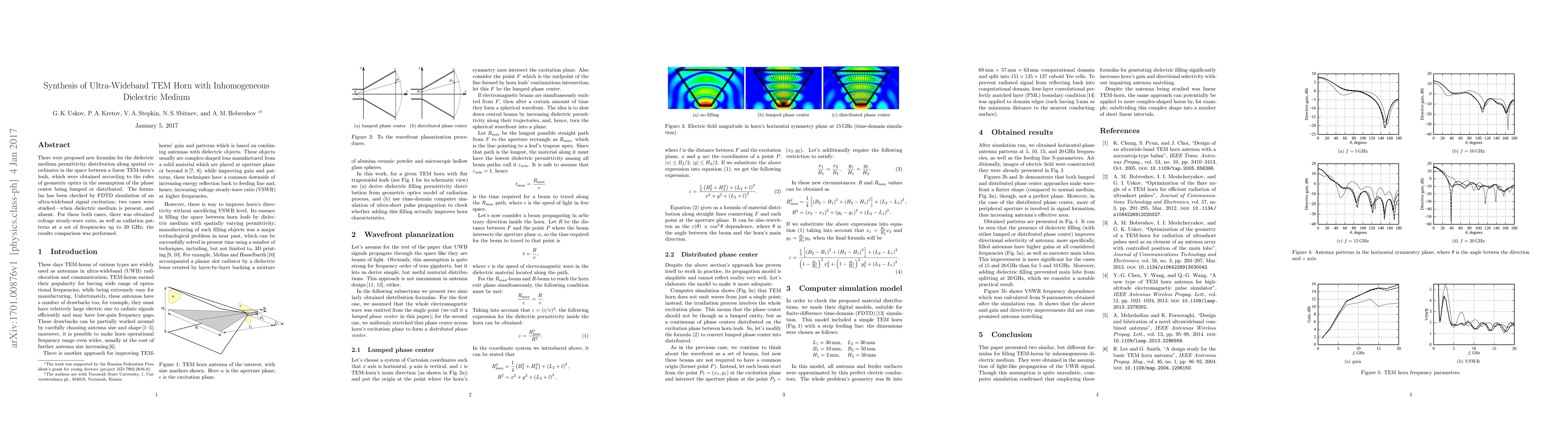 Researchers developed new formulas for dielectric medium permittivity distribution in ultra-wideband TEM horns, which were validated through FDTD simulations, showing improved radiation patterns and voltage steady-wave ratio at high frequencies.