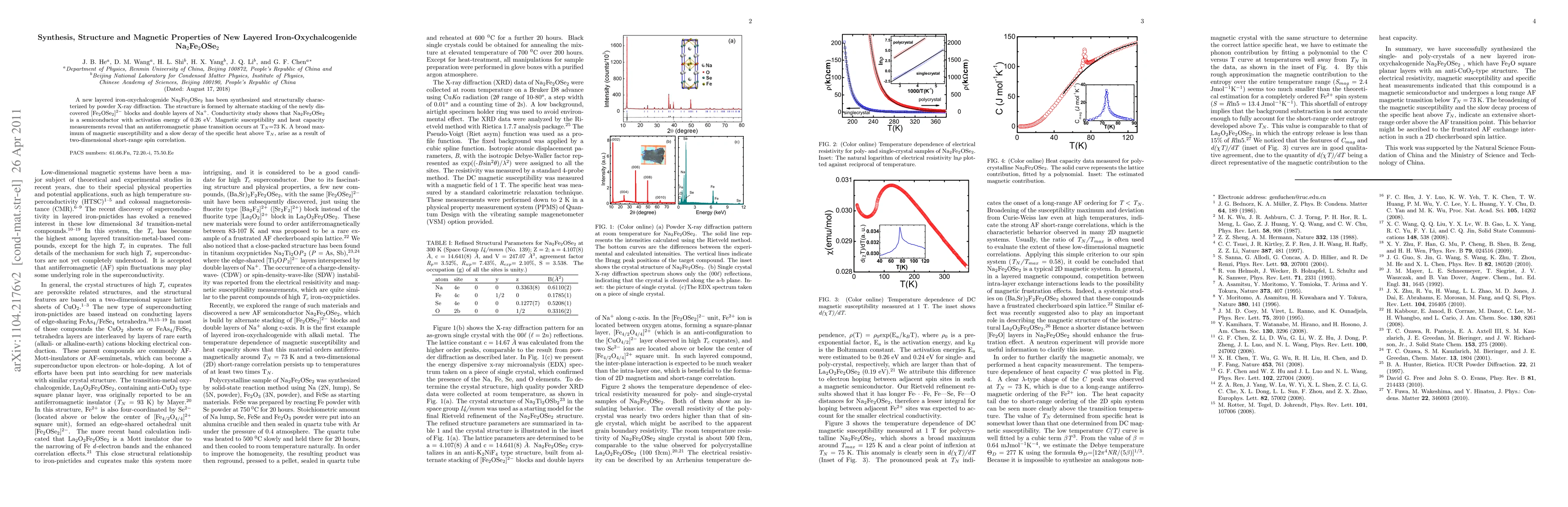 New layered iron-oxychalcogenide Na2Fe2OSe2 exhibits semiconductor properties with an activation energy of 0.26 eV, undergoing antiferromagnetic phase transition at 73 K.
