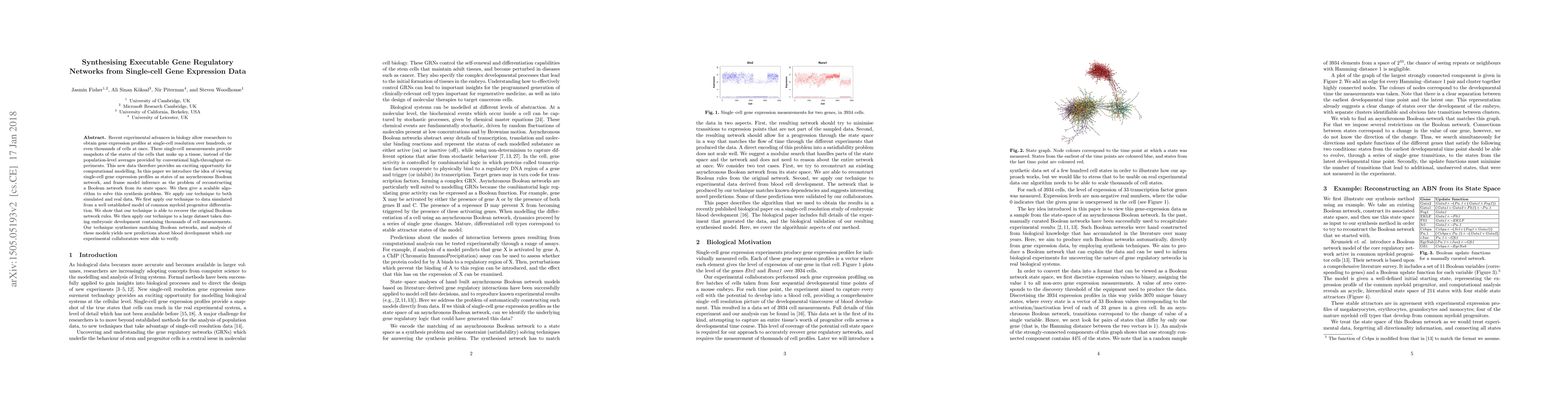 This paper proposes a method to reconstruct executable gene regulatory networks from single-cell gene expression data by modeling them as asynchronous Boolean networks. The authors develop a scalable algorithm to infer these networks and demonstrate its effectiveness on both simulated and real embryonic development datasets, yielding new insights verified by experimental collaborators.