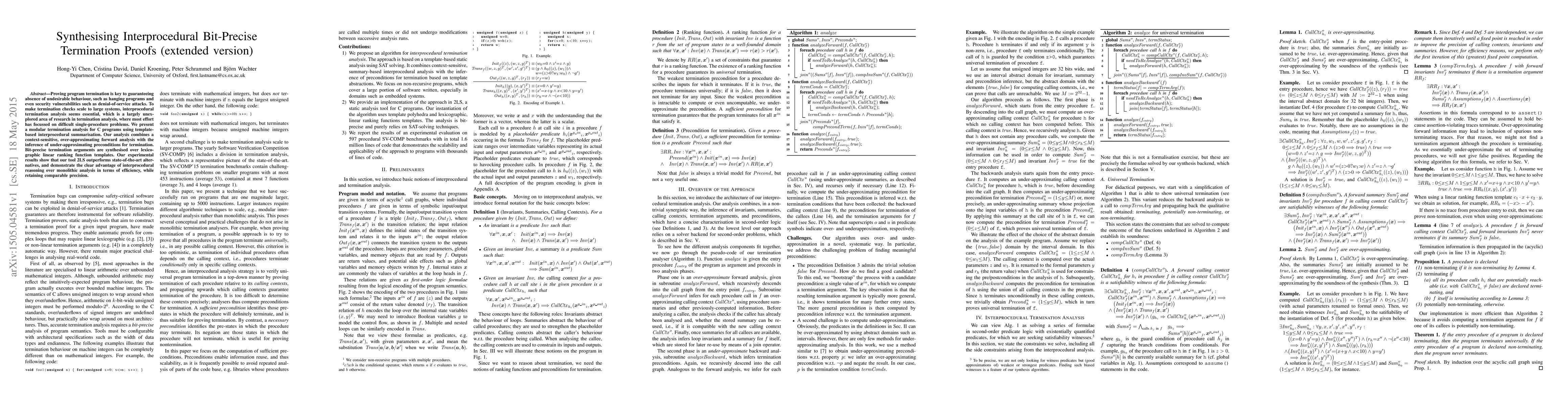 This paper presents a modular termination analysis for C programs using interprocedural summarisation to scale termination checks to large systems. The method combines context-sensitive forward analysis with precondition inference for bit-precise termination proofs, showing superior performance compared to existing tools.