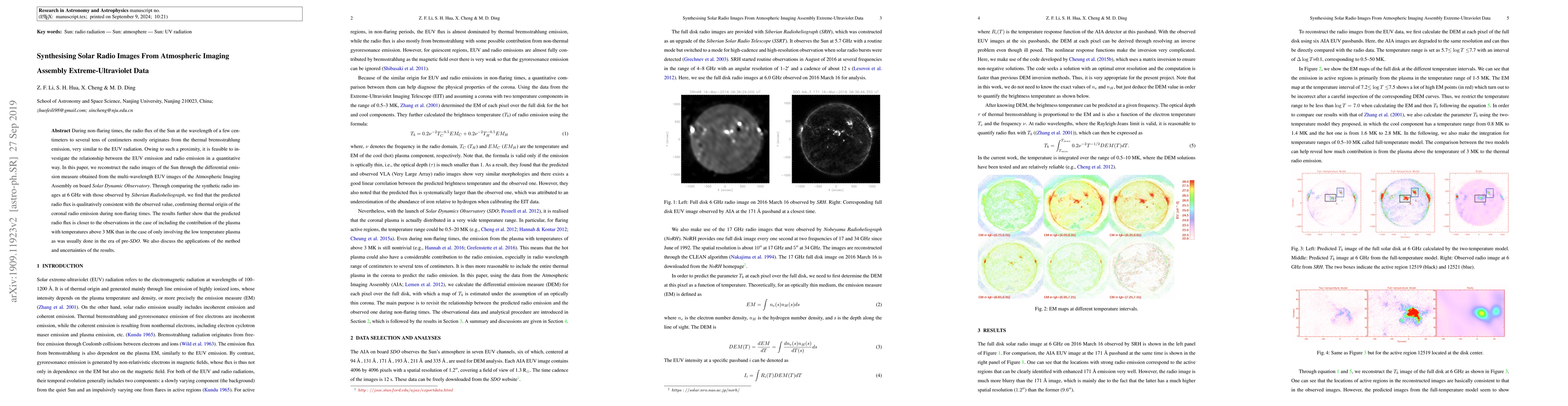 During non-flaring times, the radio flux of the Sun at the wavelength of a few centimeters to several tens of centimeters mostly originates from the thermal bremsstrahlung emission, very similar to the EUV radiation. Owing to such a proximity, it is feasible to investigate the relationship between the EUV emission and radio emission in a quantitative way. In this paper, we reconstruct the radio images of the Sun through the differential emission measure obtained from the multi-wavelength EUV images of the Atmospheric Imaging Assembly on board Solar Dynamic Observatory. Through comparing the synthetic radio images at 6 GHz with those observed by Siberian Radioheliograph, we find that the predicted radio flux is qualitatively consistent with the observed value, confirming thermal origin of the coronal radio emission during non-flaring times. The results further show that the predicted radio flux is closer to the observations in the case of including the contribution of the plasma with temperatures above 3 MK than in the case of only involving the low temperature plasma as was usually done in the era of pre-SDO. We also discuss the applications of the method and uncertainties of the results.