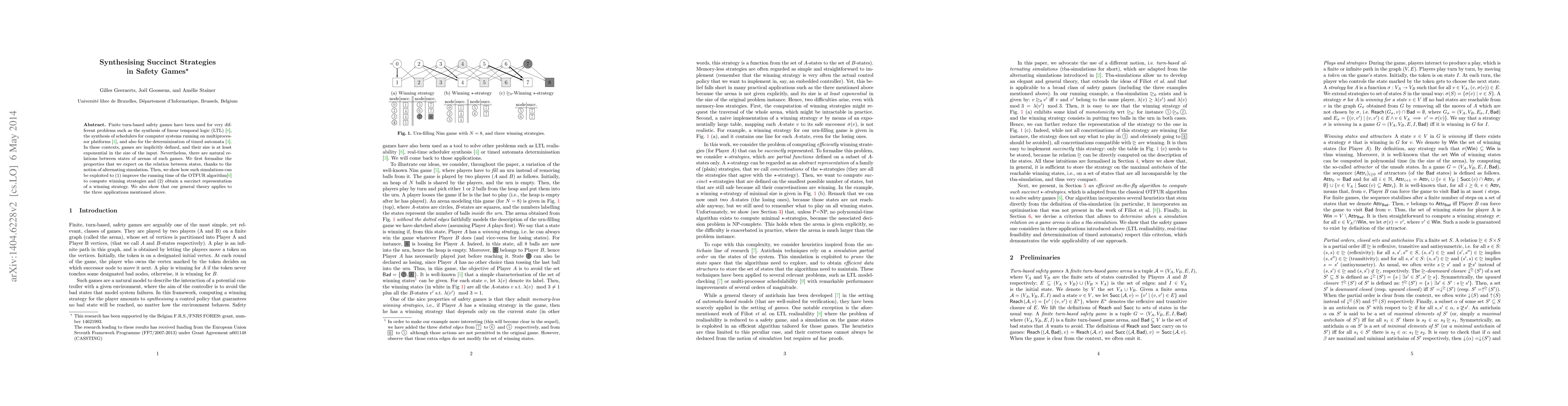 Finite turn-based safety games have been used for very different problems such as the synthesis of linear temporal logic (LTL), the synthesis of schedulers for computer systems running on multiprocessor platforms, and also for the determinisation of timed automata. In these contexts, games are implicitly defined, and their size is at least exponential in the size of the input. Nevertheless, there are natural relations between states of arenas of such games. We first formalise the properties that we expect on the relation between states, thanks to the notion of alternating simulation. Then, we show how such simulations can be exploited to (1) improve the running time of the OTFUR algorithm to compute winning strategies and (2) obtain a succinct representation of a winning strategy. We also show that our general theory applies to the three applications mentioned above.