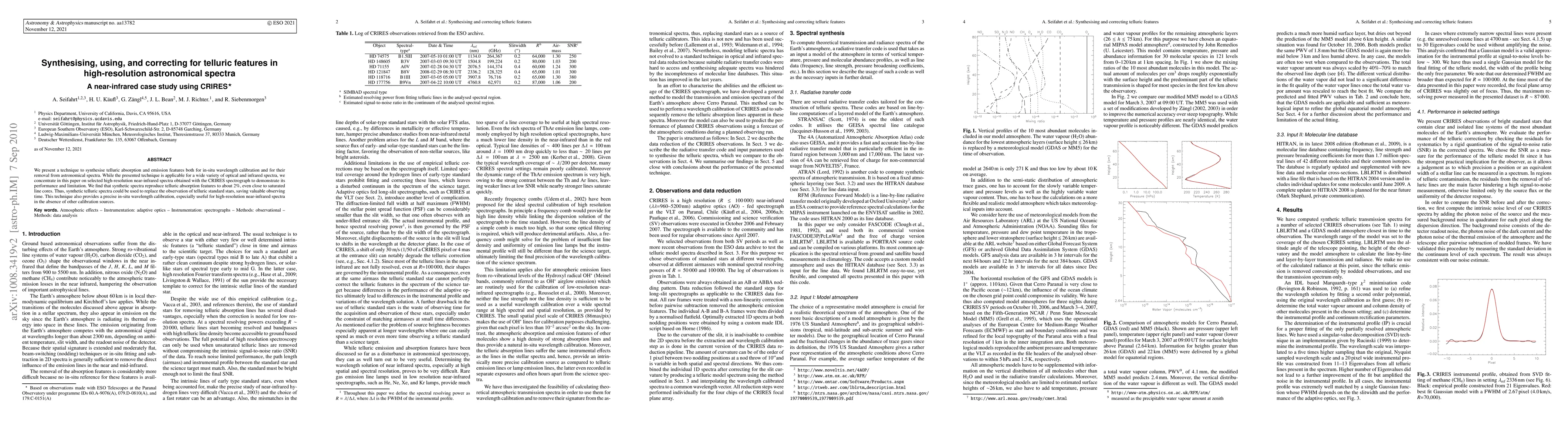 This paper introduces a method for synthesizing and correcting telluric features in high-resolution astronomical spectra, demonstrating its effectiveness on CRIRES spectrograph data. The technique accurately reproduces telluric absorption features, potentially replacing the need for telluric standard stars and providing precise wavelength calibration.