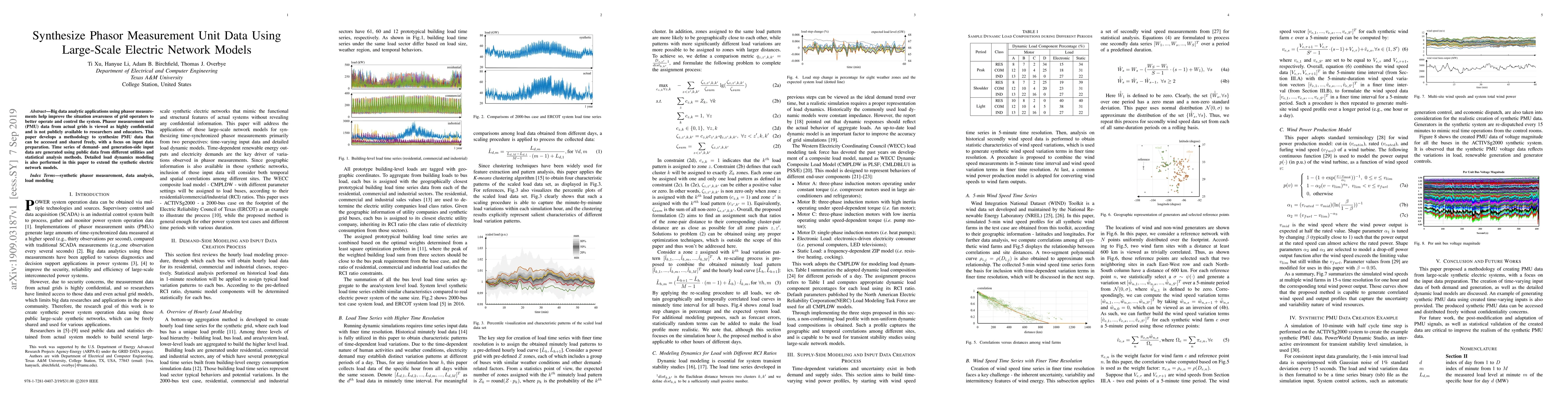 Big data analytic applications using phasor measurements help improve the situation awareness of grid operators to better operate and control the system. Phasor measurement unit (PMU) data from actual grids is viewed as highly confidential and is not publicly available to researchers and educators. This paper develops a methodology to synthesize PMU data that can be accessed and shared freely, with a focus on input data preparation. Time series of demand- and generation-side input data are generated using public data from different utilities and statistical analysis methods. Detailed load dynamics modeling is also performed in this paper to extend the synthetic electric network models.
