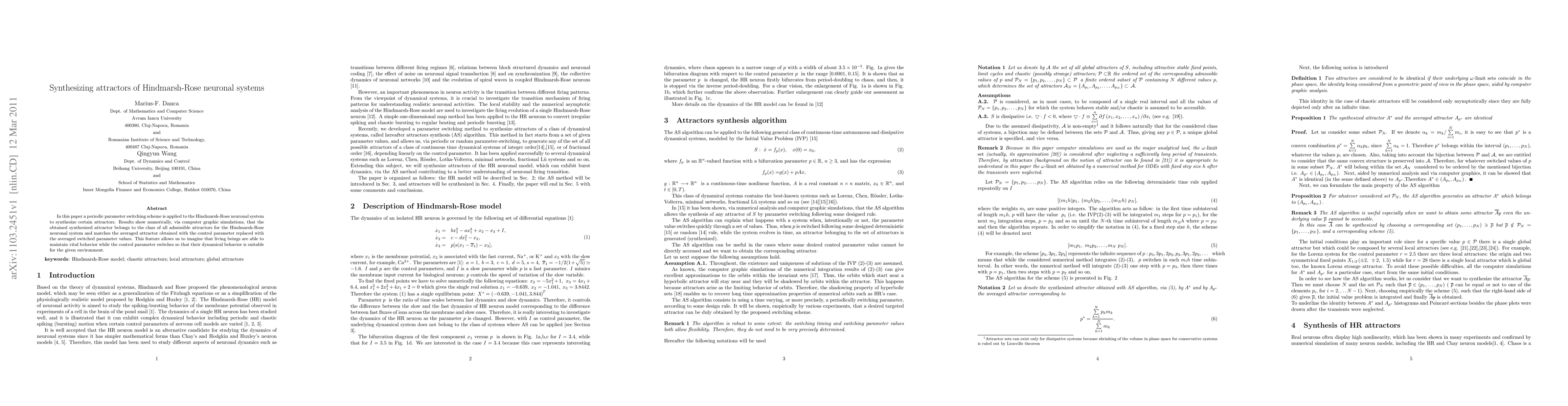 In this paper a periodic parameter switching scheme is applied to the Hindmarsh-Rose neuronal system to synthesize certain attractors. Results show numerically, via computer graphic simulations, that the obtained synthesized attractor belongs to the class of all admissible attractors for the Hindmarsh-Rose neuronal system and matches the averaged attractor obtained with the control parameter replaced with the averaged switched parameter values. This feature allows us to imagine that living beings are able to maintain vital behavior while the control parameter switches so that their dynamical behavior is suitable for the given environment.