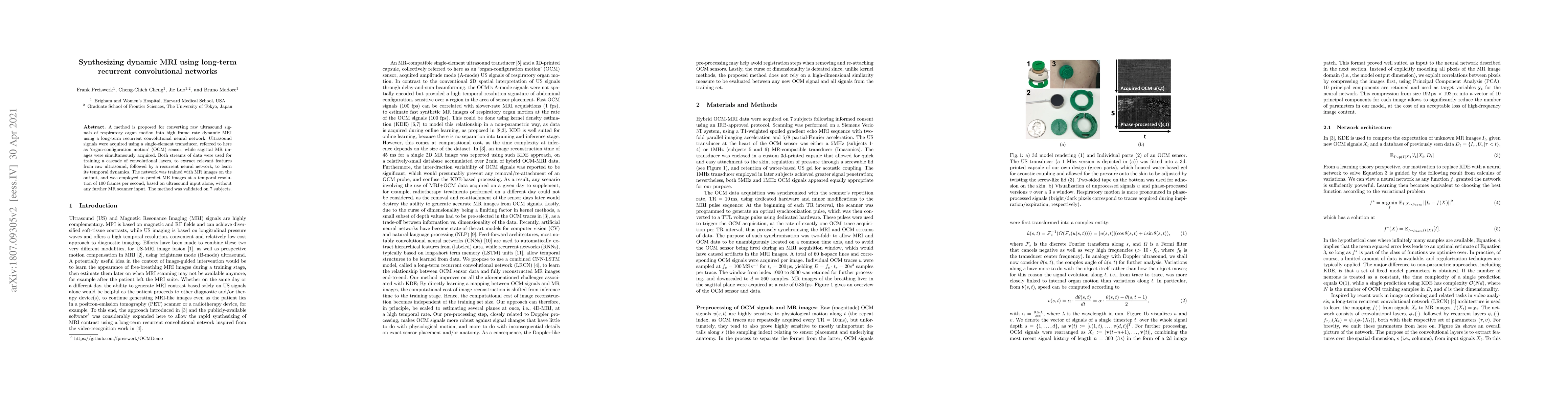 This paper proposes a method using long-term recurrent convolutional networks to convert raw ultrasound signals into high frame rate dynamic MRI, trained with simultaneous MR images, and validated on 7 subjects. The network predicts MR images at 100 frames per second based solely on ultrasound input.