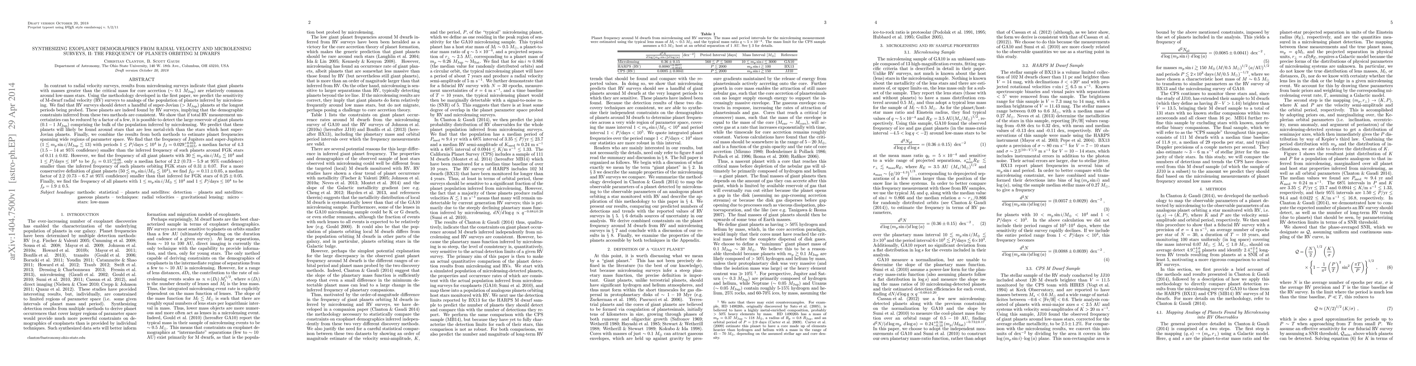 In contrast to radial velocity surveys, results from microlensing surveys indicate that giant planets with masses greater than the critical mass for core accretion ($\sim 0.1~M_{\rm Jup}$) are relatively common around low-mass stars. Using the methodology developed in the first paper, we predict the sensitivity of M-dwarf radial velocity (RV) surveys to analogs of the population of planets inferred by microlensing. We find that RV surveys should detect a handful of super-Jovian ($>M_{\rm Jup}$) planets at the longest periods being probed. These planets are indeed found by RV surveys, implying that the demographic constraints inferred from these two methods are consistent. We combine the results from both methods to estimate planet frequencies spanning wide regions of parameter space. We find that the frequency of Jupiters and super-Jupiters ($1\lesssim m_p\sin{i}/M_{\rm Jup}\lesssim 13$) with periods $1\leq P/{\rm days}\leq 10^4$ is $f_{\rm J}=0.029^{+0.013}_{-0.015}$, a median factor of 4.3 ($1.5-14$ at 95% confidence) smaller than the inferred frequency of such planets around FGK stars of $0.11\pm 0.02$. However, we find the frequency of all giant planets with $30\lesssim m_p\sin{i}/M_{\oplus}\lesssim 10^4$ and $1\leq P/{\rm days}\leq 10^4$ to be $f_{\rm G}=0.15^{+0.06}_{-0.07}$, only a median factor of 2.2 ($0.73-5.9$ at 95% confidence) smaller than the inferred frequency of such planets orbiting FGK stars of $0.31\pm 0.07$. For a more conservative definition of giant planets ($50\lesssim m_p\sin{i}/M_{\oplus}\lesssim 10^4$), we find $f_{\rm G'}=0.11\pm 0.05$, a median factor of 2.2 ($0.73-6.7$ at 95% confidence) smaller than that inferred for FGK stars of $0.25\pm 0.05$. Finally, we find the frequency of all planets with $1\leq m_p\sin{i}/M_{\oplus}\leq 10^4$ and $1\leq P/{\rm days}\leq10^4$ to be $f_p=1.9\pm 0.5$.