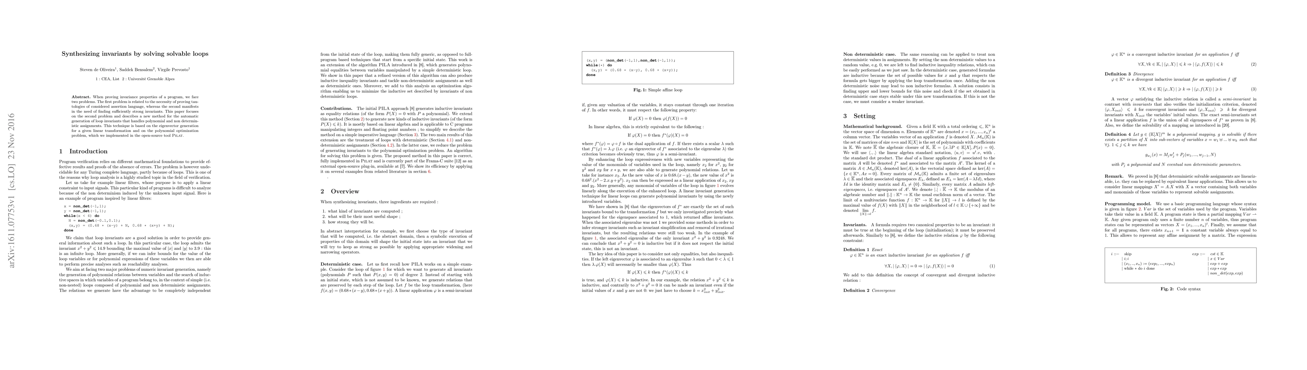 This paper presents a novel method for automatically generating loop invariants to prove program invariance, addressing the challenge of finding sufficiently strong invariants. It leverages eigenvector generation and polynomial optimization, implemented in the open-source tool Pilar.