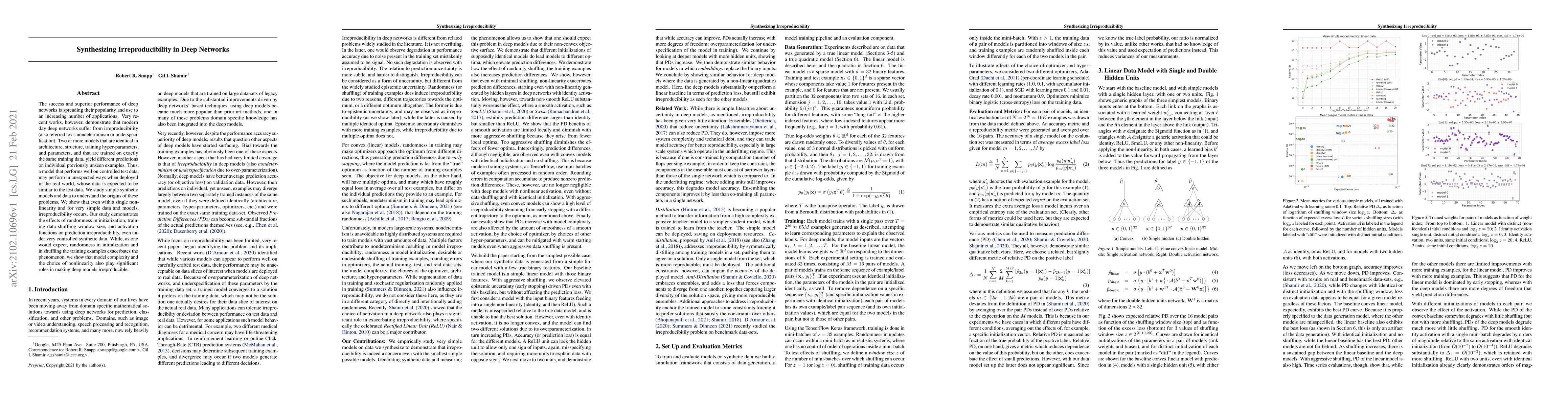 The success and superior performance of deep networks is spreading their popularity and use to an increasing number of applications. Very recent works, however, demonstrate that modern day deep networks suffer from irreproducibility (also referred to as nondeterminism or underspecification). Two or more models that are identical in architecture, structure, training hyper-parameters, and parameters, and that are trained on exactly the same training data, yield different predictions on individual previously unseen examples. Thus, a model that performs well on controlled test data, may perform in unexpected ways when deployed in the real world, whose data is expected to be similar to the test data. We study simple synthetic models and data to understand the origins of these problems. We show that even with a single nonlinearity and for very simple data and models, irreproducibility occurs. Our study demonstrates the effects of randomness in initialization, training data shuffling window size, and activation functions on prediction irreproducibility, even under very controlled synthetic data. While, as one would expect, randomness in initialization and in shuffling the training examples exacerbates the phenomenon, we show that model complexity and the choice of nonlinearity also play significant roles in making deep models irreproducible.