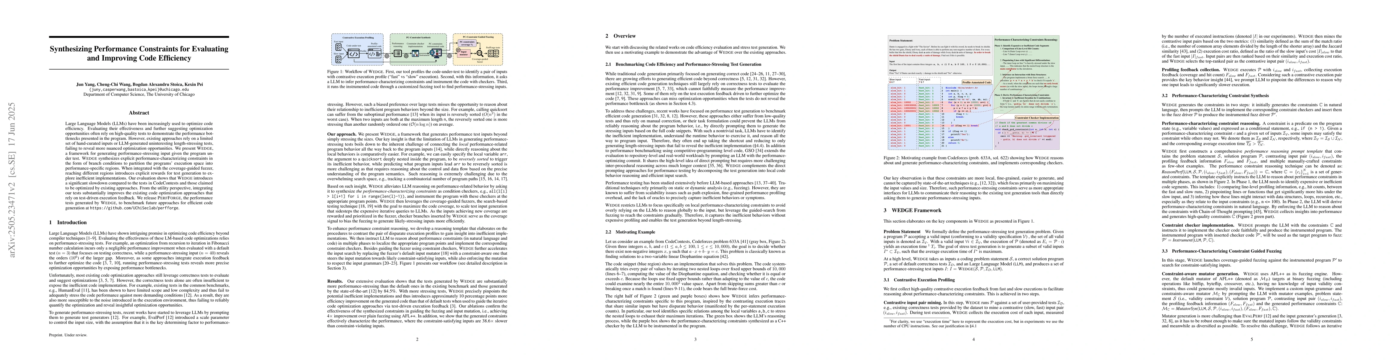 WEDGE, a novel framework for synthesizing performance-stressing inputs by generating explicit performance-characterizing constraints, combined with a coverage-guided fuzzer to improve code optimization approaches.
