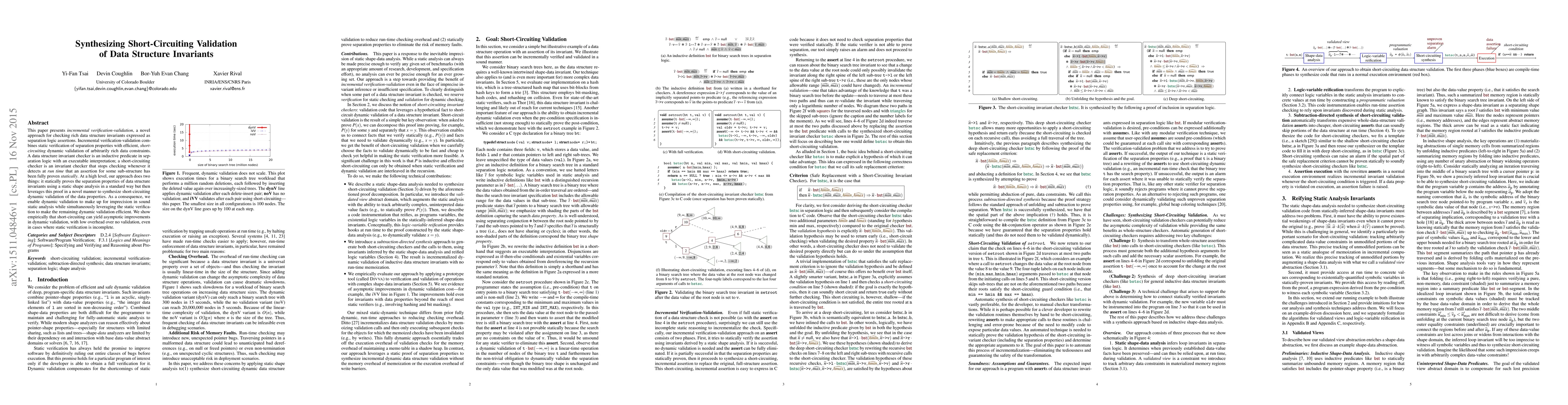 This paper presents incremental verification-validation, a novel approach for checking rich data structure invariants expressed as separation logic assertions. Incremental verification-validation combines static verification of separation properties with efficient, short-circuiting dynamic validation of arbitrarily rich data constraints. A data structure invariant checker is an inductive predicate in separation logic with an executable interpretation; a short-circuiting checker is an invariant checker that stops checking whenever it detects at run time that an assertion for some sub-structure has been fully proven statically. At a high level, our approach does two things: it statically proves the separation properties of data structure invariants using a static shape analysis in a standard way but then leverages this proof in a novel manner to synthesize short-circuiting dynamic validation of the data properties. As a consequence, we enable dynamic validation to make up for imprecision in sound static analysis while simultaneously leveraging the static verification to make the remaining dynamic validation efficient. We show empirically that short-circuiting can yield asymptotic improvements in dynamic validation, with low overhead over no validation, even in cases where static verification is incomplete.