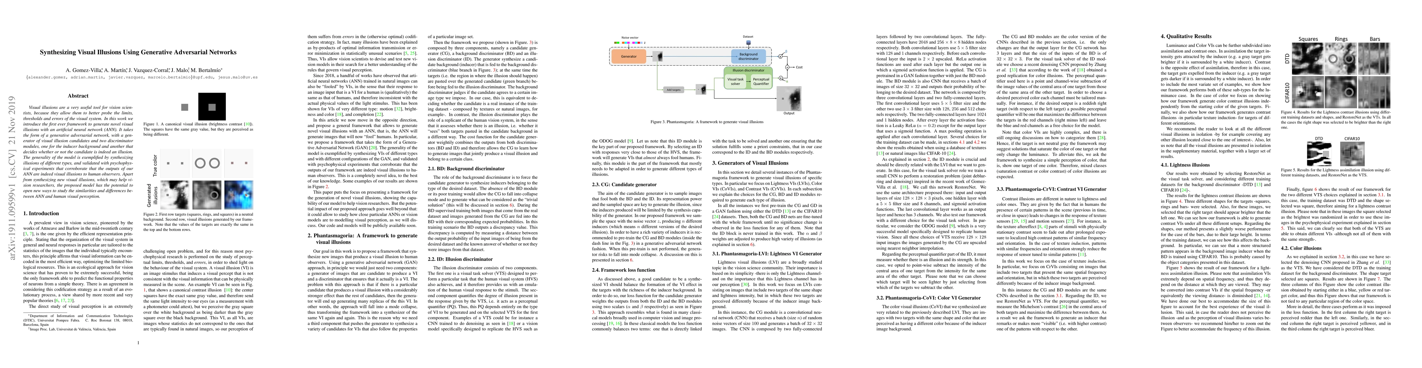 This paper presents a generative adversarial network framework to create novel visual illusions, demonstrating its effectiveness through psychophysical experiments that confirm human observers perceive the generated illusions. The model also offers insights into the differences and similarities between artificial neural networks and human visual perception.