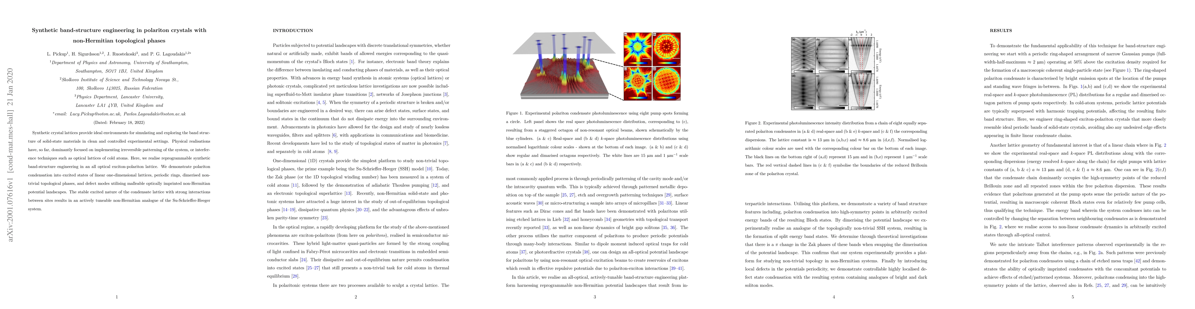 This paper demonstrates synthetic band-structure engineering in an optical exciton-polariton lattice, achieving reprogrammable control over topological phases and defect modes through malleable non-Hermitian potential landscapes, leading to an actively tunable analogue of the Su-Schrieffer-Heeger system.