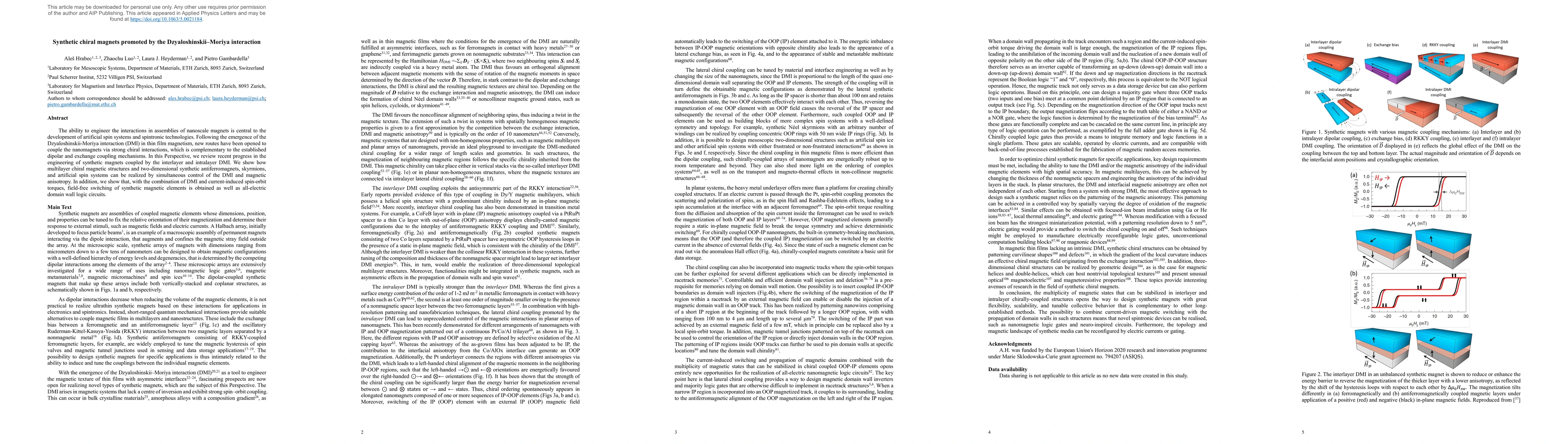 This paper reviews advancements in synthetic chiral magnets enabled by the Dzyaloshinskii-Moriya interaction (DMI), highlighting the engineering of multilayer structures and skyrmions through controlled DMI and magnetic anisotropy. It also discusses field-free switching and all-electric domain wall logic circuits facilitated by DMI and spin-orbit torques.