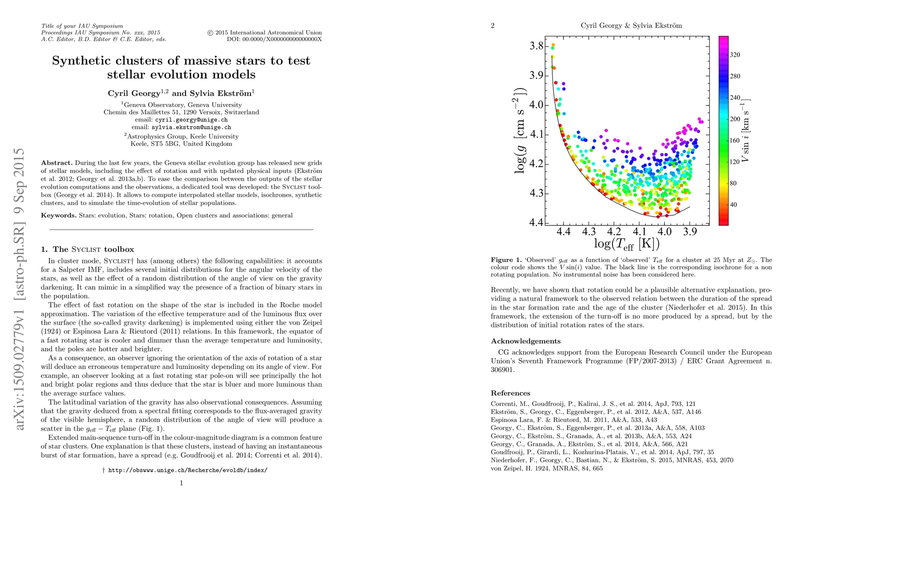 During the last few years, the Geneva stellar evolution group has released new grids of stellar models, including the effect of rotation and with updated physical inputs (Ekstr\"om et al. 2012; Georgy et al. 2013a,b). To ease the comparison between the outputs of the stellar evolution computations and the observations, a dedicated tool was developed: the Syclist toolbox (Georgy et al. 2014). It allows to compute interpolated stellar models, isochrones, synthetic clusters, and to simulate the time-evolution of stellar populations.