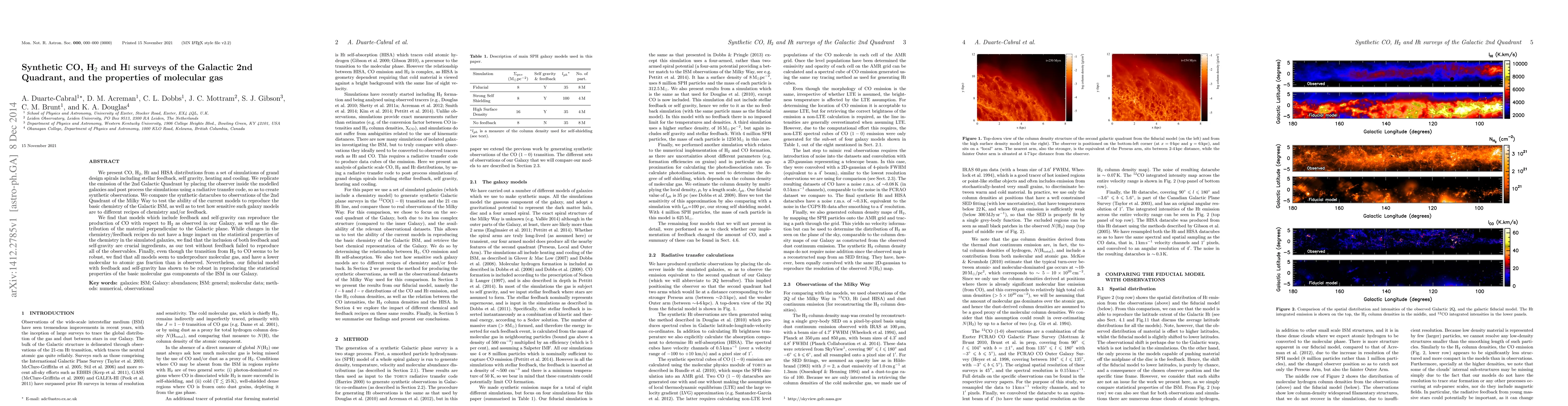 We present CO, H2, HI and HISA distributions from a set of simulations of grand design spirals including stellar feedback, self-gravity, heating and cooling. We replicate the emission of the 2nd Galactic Quadrant by placing the observer inside the modelled galaxies and post process the simulations using a radiative transfer code, so as to create synthetic observations. We compare the synthetic datacubes to observations of the 2nd Quadrant of the Milky Way to test the ability of the current models to reproduce the basic chemistry of the Galactic ISM, as well as to test how sensitive such galaxy models are to different recipes of chemistry and/or feedback. We find that models which include feedback and self-gravity can reproduce the production of CO with respect to H2 as observed in our Galaxy, as well as the distribution of the material perpendicular to the Galactic plane. While changes in the chemistry/feedback recipes do not have a huge impact on the statistical properties of the chemistry in the simulated galaxies, we find that the inclusion of both feedback and self-gravity are crucial ingredients, as our test without feedback failed to reproduce all of the observables. Finally, even though the transition from H2 to CO seems to be robust, we find that all models seem to underproduce molecular gas, and have a lower molecular to atomic gas fraction than is observed. Nevertheless, our fiducial model with feedback and self-gravity has shown to be robust in reproducing the statistical properties of the basic molecular gas components of the ISM in our Galaxy.