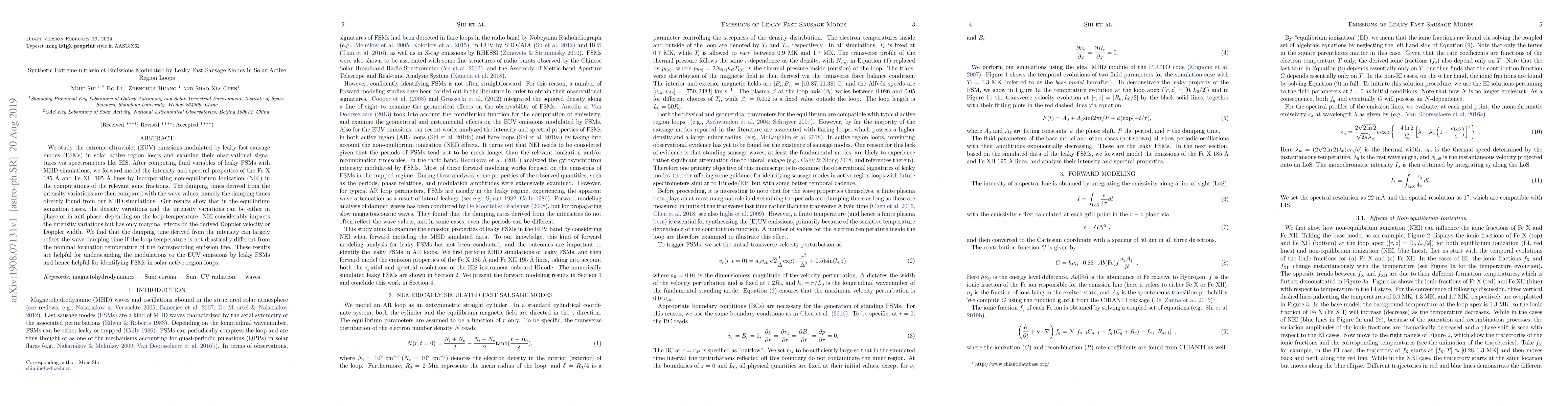 This study investigates how leaky fast sausage modes in solar active region loops modulate extreme-ultraviolet emissions, finding that intensity variations can reflect wave damping times if loop temperatures match the emission line formation temperature.