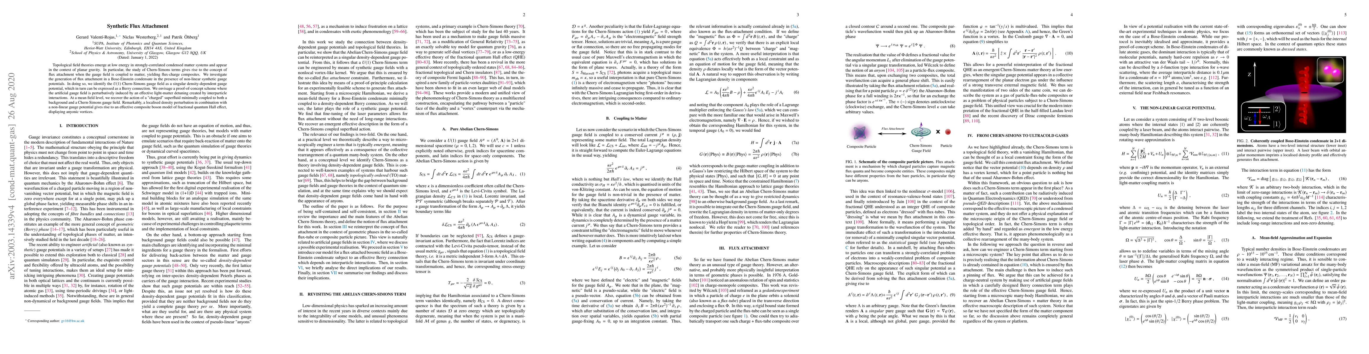 The research investigates synthetic flux attachment in a Bose-Einstein condensate using non-linear synthetic gauge potentials, identifying the U(1) Chern-Simons gauge field as a singular density-dependent gauge potential expressible as a Berry connection.