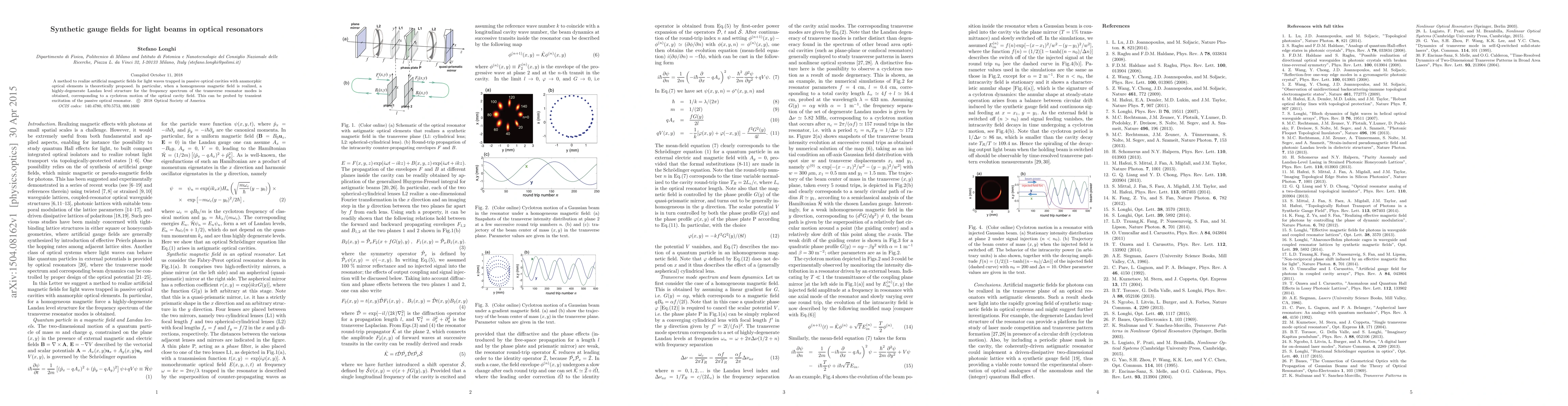 A method to realize artificial magnetic fields for light waves trapped in passive optical cavities with anamorphic optical elements is theoretically proposed. In particular, when a homogeneous magnetic field is realized, a highly-degenerate Landau level structure for the frequency spectrum of the transverse resonator modes is obtained, corresponding to a cyclotron motion of the optical cavity field. This can be probed by transient excitation of the passive optical resonator.