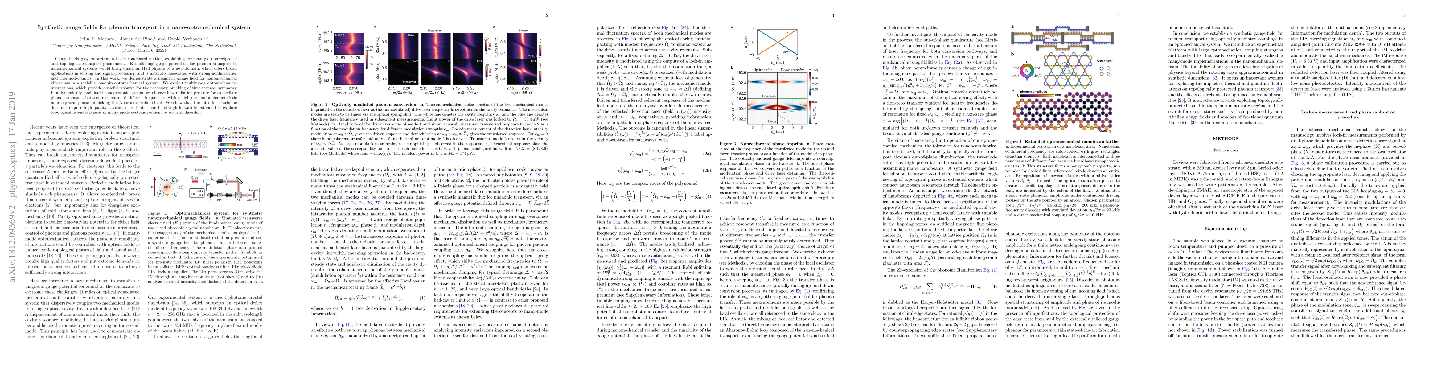 This paper demonstrates the creation of a synthetic gauge field for phonon transport in a nano-optomechanical system, utilizing multimode optomechanical interactions to mediate phonon transport with a nonreciprocal phase akin to the Aharonov-Bohm effect, thus extending quantum Hall physics to phonons and enabling potential applications in sensing and signal processing.