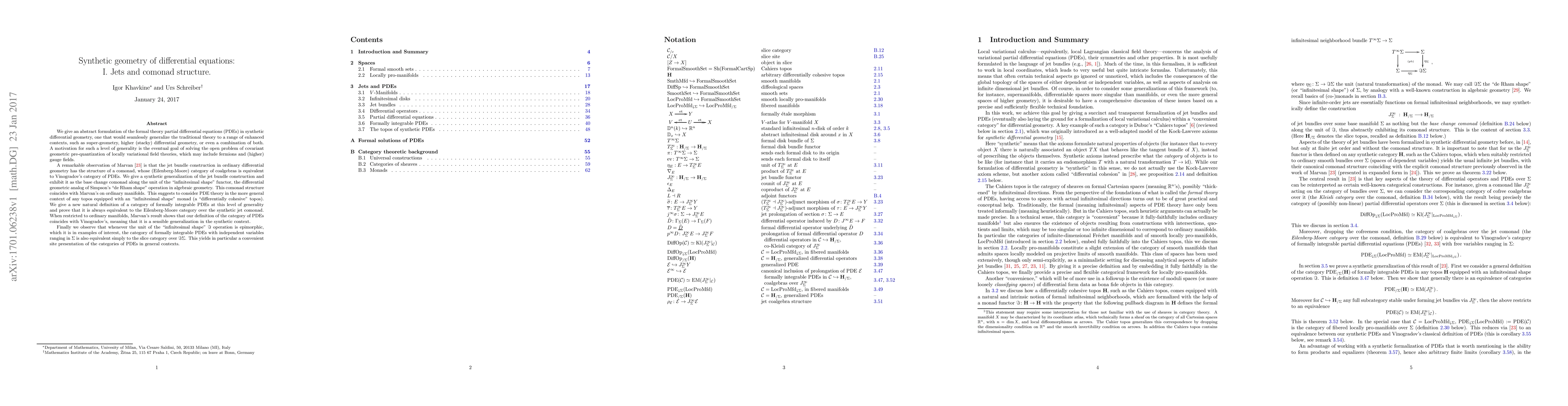This paper introduces an abstract formulation of partial differential equations (PDEs) using synthetic differential geometry, focusing on jets and comonad structures to generalize traditional theories to advanced contexts like super-geometry and higher differential geometry. The ultimate aim is to address the challenge of covariant geometric pre-quantization in locally variational field theories.