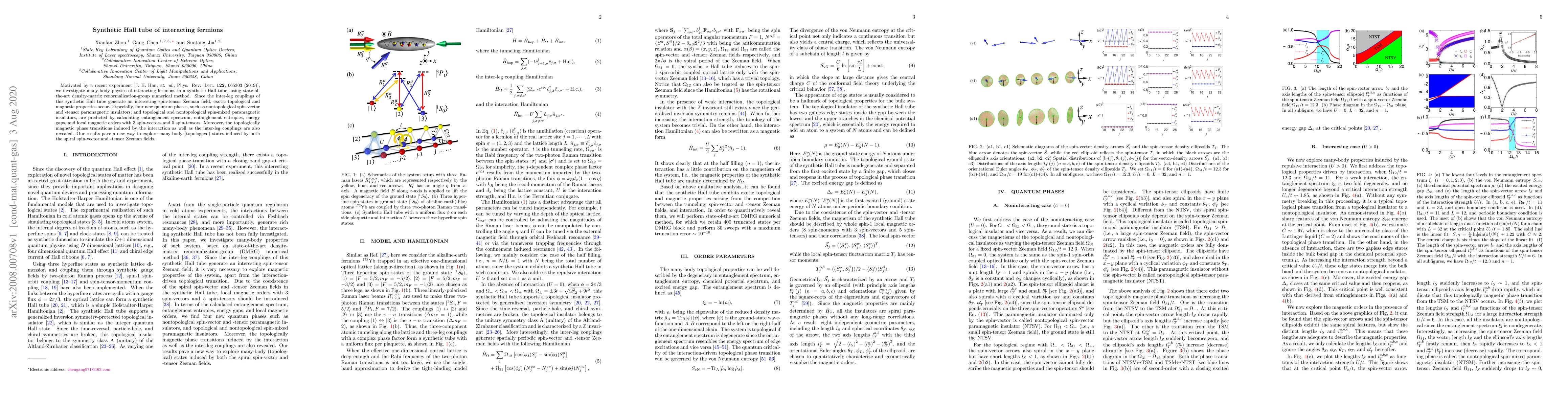 This paper explores the many-body physics of interacting fermions in a synthetic Hall tube, employing advanced numerical methods to predict the emergence of four new quantum phases, including topological and nontopological spin-vector and tensor paramagnetic insulators. The study reveals topological phase transitions driven by interactions and inter-leg couplings, highlighting the potential for new topological states.