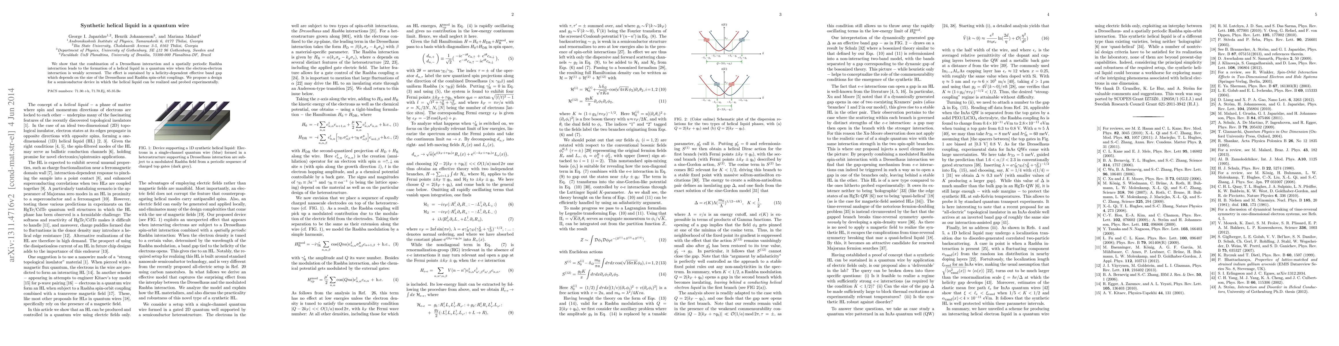 We show that the combination of a Dresselhaus interaction and a spatially periodic Rashba interaction leads to the formation of a helical liquid in a quantum wire when the electron-electron interaction is weakly screened. The effect is sustained by a helicity-dependent effective band gap which depends on the size of the Dresselhaus and Rashba spin-orbit couplings. We propose a design for a semiconductor device in which the helical liquid can be realized and probed experimentally.