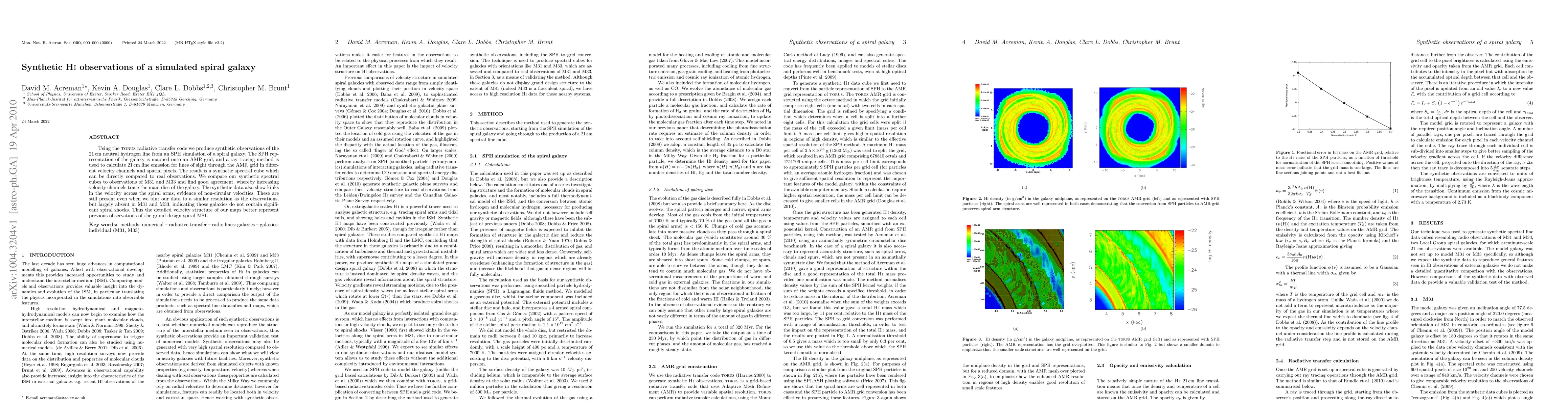 This paper uses the Torus radiative transfer code to generate synthetic 21 cm HI observations from an SPH simulation of a spiral galaxy, comparing the results to real M31 and M33 observations. The synthetic data show non-circular velocities and spiral arm kinks, which better match observations of the grand design spiral M81 than M31 and M33.