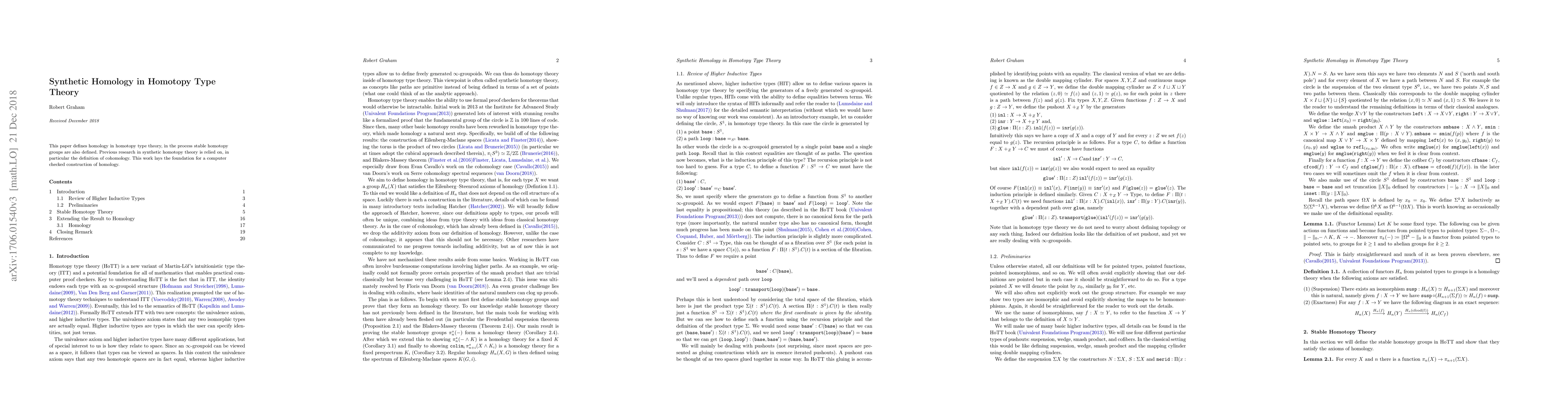 This paper introduces homology within homotopy type theory, establishing stable homotopy groups and building on previous synthetic homotopy theory, particularly cohomology, to enable a computer-verified construction of homology.